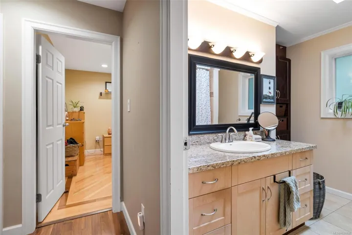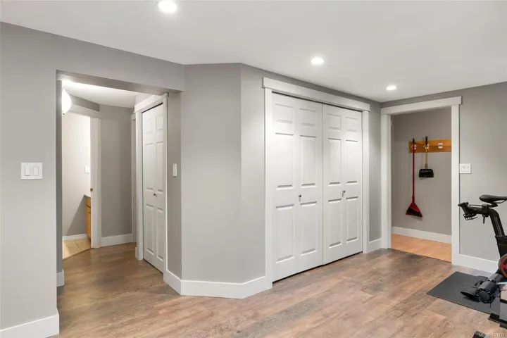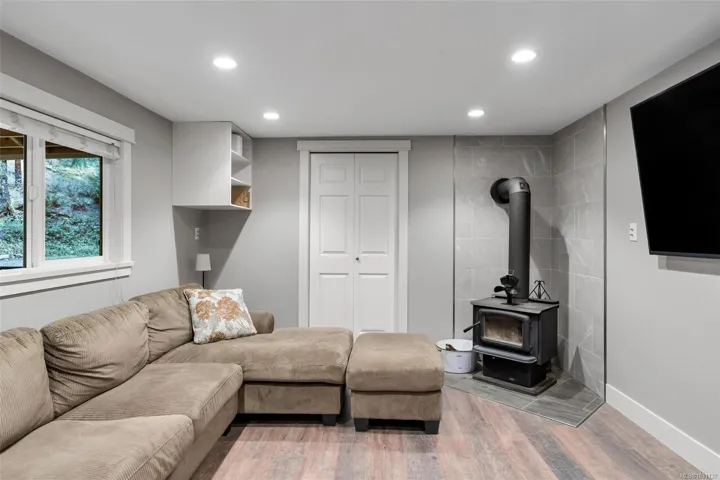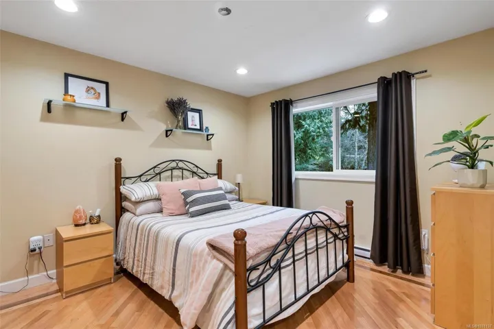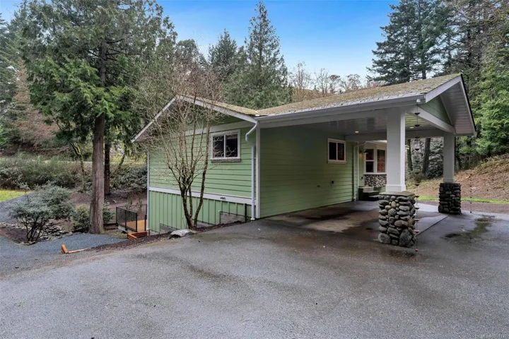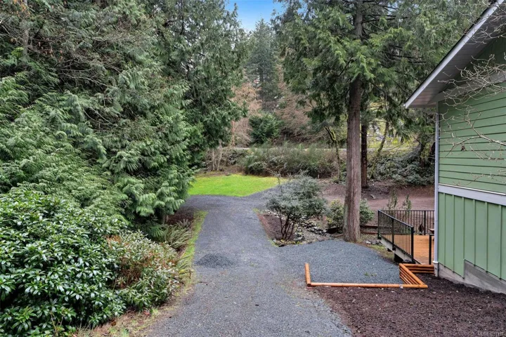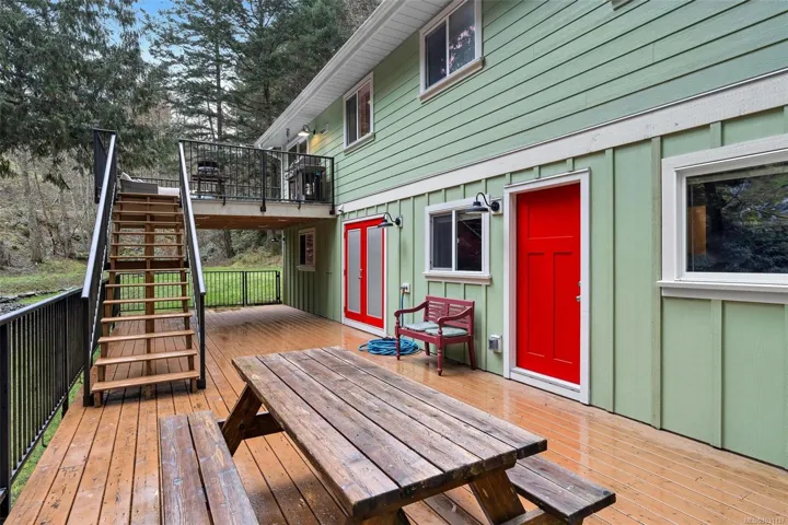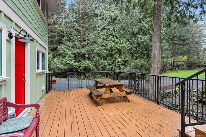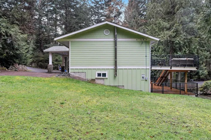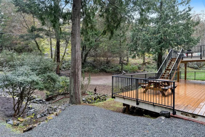 This updated 1988 home offers 5 bedrooms & 2 bathrooms on a private 35,000 sq ft lot set well back from the road. The open concept main floor features Brazilian hardwood floors and a spacious great room. The kitchen sits at the heart of the home with maple shaker cabinets, granite countertops, stainless appliances, ample storage, and an island overlooking the living and dining areas. A bay window brightens the living room, while the dining area opens directly to over 800 sq ft of deck space perfect for indoor-outdoor living. There is a covered area with roughed in outdoor shower. Enjoy southwest exposure, a sunny backyard, mature trees, and a seasonal creek for added privacy and ambiance. The main level includes 3 bedrooms and a 4-piece bath. Downstairs offers a large rec room, 2 bedrooms, full bath, laundry, and workshop. A suite was previously installed and can easily be converted back. New hardy siding, aluminum soffits, municipal water and septic system has been well taken care of