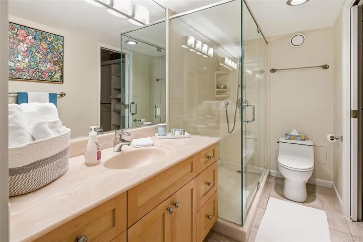 style floor tiles. The living room boasts a gas fireplace set amidst a wall of windows. The second bedroom is set up as an office, with yoga space and Murphy bed. EV charging stall, plenty of visitor parking, kayak/paddle board storage, fitness, games workshop and conference rooms in this fantastic location: walk score 84 near E&N and Galloping Goose, seawall, beaches, pubs and restaurants. Direct bus to UVic. Well managed building, new elevators, roofs etc. Call your realtor today!