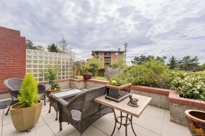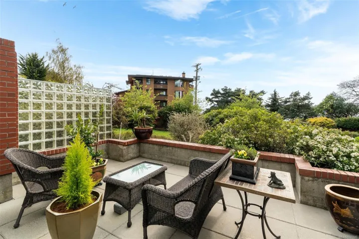 OPEN HOUSE SUNDAY APRIL 19, 1-3 PM. Wake up surrounded by expansive, beautiful gardens, & the nearby ocean. Enjoy your morning coffee on the patio of this south & east facing condo, or a glass of wine by the fire at the end of your day. This corner suite is in a steel, glass and concrete building with full height windows throughout. It offers two bedrooms, a spacious bathroom, a large living and dining area perfect for entertaining, and a newly renovated kitchen with quartz countertops and Mediterranean-