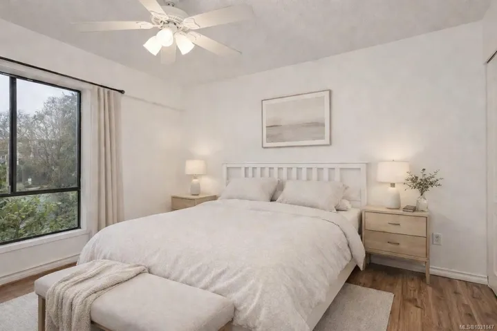 Open House Sat April 18 1:30-3pm. Excellent value in this bright, spacious, and quiet 1 bed/1 bath freehold condo featuring one of the most popular layouts in the complex. This well-managed building offers fantastic amenities including an indoor pool, hot tub, sauna, tennis courts, games room, workshop, library, extra storage, and fitness centre. Heat and hot water are included in the low strata fee of only $539/month. The functional floor plan offers generous living space plus a bonus enclosed balcony for added flexibility. Ideally located near the University of Victoria and just steps to shopping, transit, parks, and amenities. One parking stall is included, with more available to rent upon request. No age restrictions and owner-occupied, allowing for flexible possession. Assessed at $393,800.