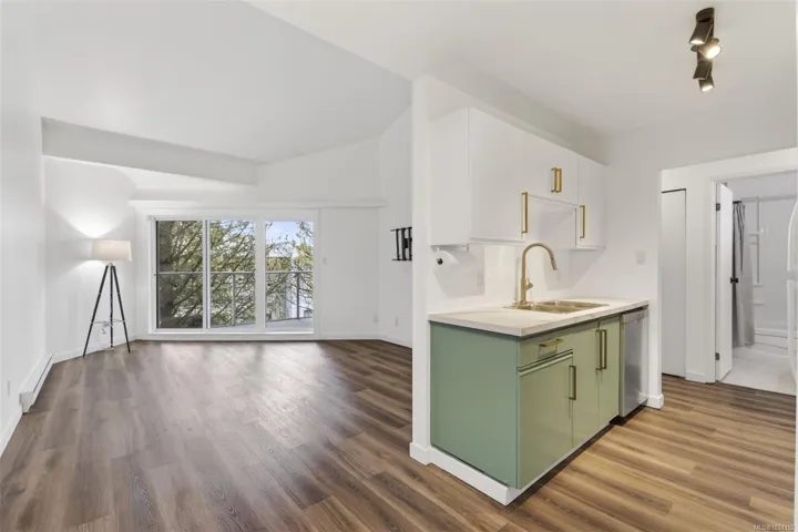 What a fantastic opportunity to purchase an affordable condo in Saanich East! This stylish and updated top floor 1 bed – 1 bath suite has a spacious floor-plan that features soaring 14′ vaulted ceilings. You’ll love having a morning coffee or a tasty beverage after work on the private south facing balcony with access from both the bedroom and living room. The building has recently completed a gorgeous exterior upgrade, there’s secured parking, storage, and a park-like courtyard out front. The strata is professionally managed and this is a pet, family and rental friendly building. The central location allows for an easy commute to Downtown with all the entertainment and culture that Victoria has to offer. Enjoy a neighborhood walk in the sunshine to the numerous parks, shopping and other amenities in the immediate area. This condo makes for a wonderful home, a terrific investment, or a delightful pied-à-terre so please act soon as it won’t be around for long!