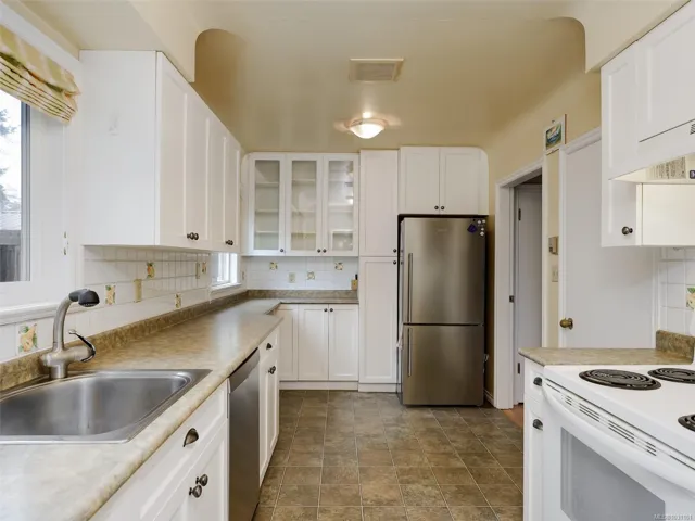Located on a quiet street at the Fairfield/Oak Bay border, this 1960’s home enjoys a sought-after location with easy access to Oak Bay Village, downtown, waterfront paths, parks, and schools. The main level features 3 bedrms, a sunken living room with wood stove, and refinished hardwd floors that add warmth throughout. The kitchen is efficient and well-laid out, connecting easily to the main living spaces. The lower level provides a separate 2-bedrm suite w/ its own entrance and parking, offering excellent versatility for family or income. There is also space for an office/flex room and the laundry area is large enough to double as a family room or den. Outdoors, the west-facing backyard is a true extension of the home—meticulously landscaped and designed for year-round enjoyment, with multiple patio areas, outdoor cooking space, fire feature with built-in seating, pond, detached studio, and covered hot tub, creating a private and inviting retreat for entertaining or quiet relaxation.