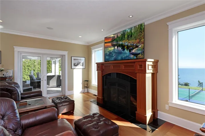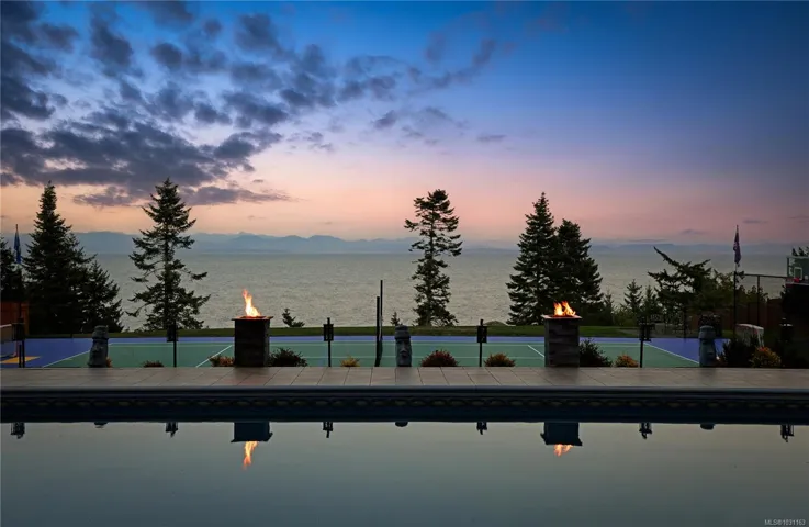 Settled on a 2.47-ac oceanfront parcel, this 6589 sqft home has numerous conveniences and high-end finishes. Inside the 4-bd, 6-bth residence, you will find finishes like Brazilian cherry hardwood, heated tiles & basement, coffered ceilings, gas fireplaces, quartz counters, turn & tilt windows, and impressive natural lighting. Dramatic vistas dominate. Interior amenities: sound insulated media room, games room, gym and sauna, wine cellar, formal office, separate dining room, ensuites for every bedroom, chef’s kitchen and 3-car garage. Outside: freshly painted tennis / pickleball / bball / ball hockey court, putting green, oversized chess, covered deck & patio, ht tb, 8’ deep pool, ocean access, fenced yard, gated entrance, fire columns & landscaped throughout. Infrastructure: generator, security system, 2 wells, built-in bbq, 400-amp service, electric charger roughed in, O/D electric heaters, and speaker system. Meant to be seen in person. Book a showing today. Foreign Buyer Ban Exempt