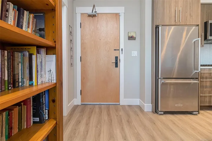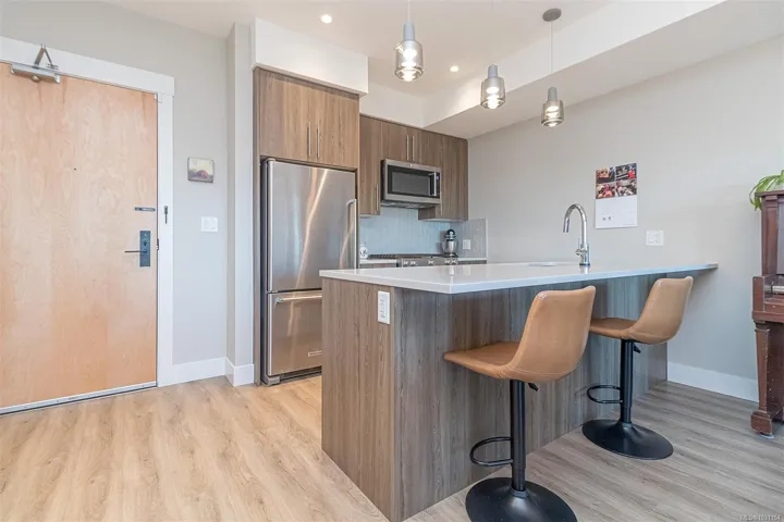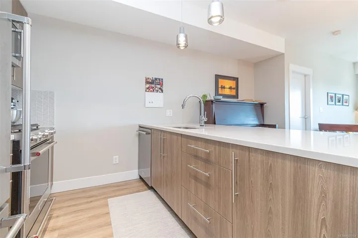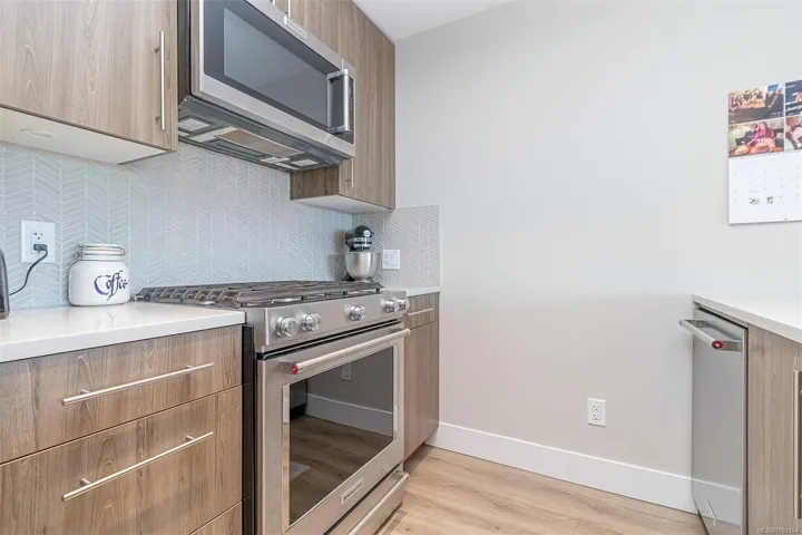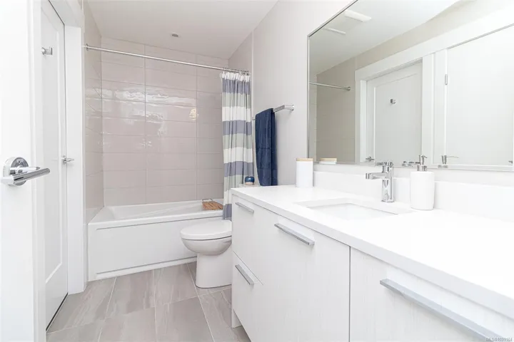 Welcome to this luxurious 2 Bed, 2 Bath home with panoramic OCEAN views! Facing the quieter side, this well-kept unit features an open layout flooded with natural light thru double glaze windows. Stylish kitchen boasts a gas range, quartz countertops, high-end SS appliances & island. Spacious living room with cozy gas fireplace extends to large balcony, enjoy your peaceful sea glimpses! Primary & guest bedrooms are separate for great privacy, both with walk-in closets extending to their own full bathrooms! Second bath connects to guest bedroom via a smart cheater door! More features incl. in-suite laundry+storage, heated floors, custom shelves & barn door – elegance & comfort in every detail! Premium building (under warranty) offers secured underground parking, bike/paddle board/kayak storage & locker. Extra parking possible, EV Infrastructure. Pets & Rental allowed! Steps to Lochside, café & beaches & quick access to highway, airport, golf & amenities.