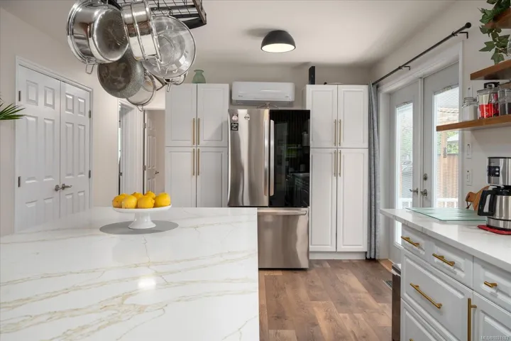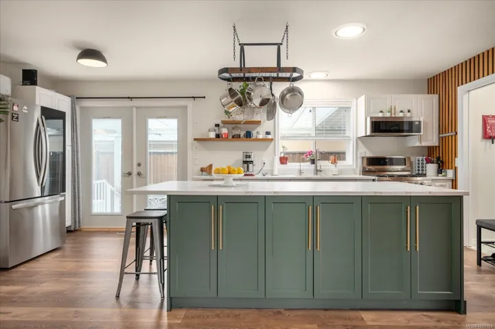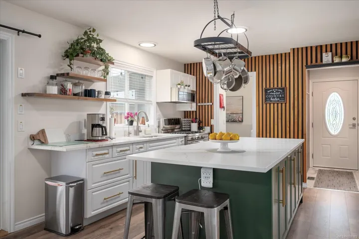 This is the one you have been waiting for! Quintessential Deerwood Park, this home is sure to impress! From the charming landscaping out front to the complete renovation inside, you are going to love this spectacular home! Featuring a 3 year old roof, fresh paint inside and out, a 1 year old ductless heat pump and A/C, gorgeous new flooring and of course a massive and open chefs kitchen with 8′ island of solid stone are just a few of the incredible things you will find here! The 2 full bathrooms have been updated, the appliances and hot water tank are new, there is a wired shed, metal gates on both sides of the yard and 2 low maintenance aggregate concrete patios to enjoy, one of them is completely covered. Backing onto one of the 2 RV storage areas, this property feels private and quiet and is somewhere you will be proud to call home. This is a well maintained and gated 55+ park that allows two pets and has a large clubhouse, there is nothing to do but move in!