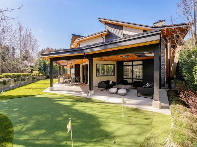 Where mornings begin with the quiet hum of a golf cart and evenings unwind in effortless West Coast elegance, this exceptional 5 bed residence offers a lifestyle beyond compare. Rare direct cart path access from your private golf cart garage (EV charger & custom storage) plus coveted couples golf membership. Light-filled open-concept main with a striking glass wine display, soaring ceilings and seamless indoor-outdoor flow. The chef-inspired kitchen features premium appliances, quartz island & full prep kitchen—perfect for relaxed entertaining. Main level primary retreat with fireplace, dual walk-ins & spa-inspired ensuite. 5th bed/office with custom built-ins. Upper bedrooms offer ensuites & walk-ins. Thoughtful upgrades include new lighting, plush carpet & window coverings, added library, new screen doors, hot tub power, dog run & beautifully enhanced landscaping for privacy & curb appeal.