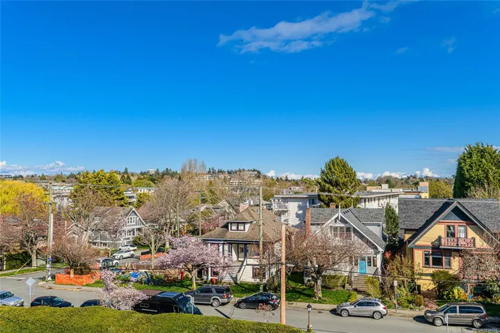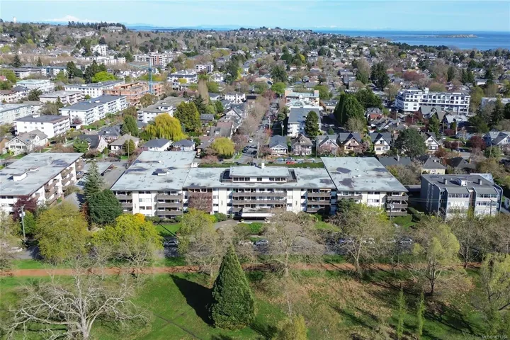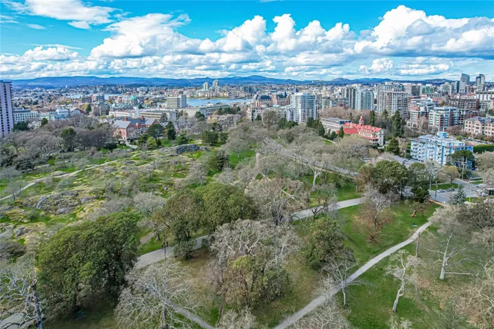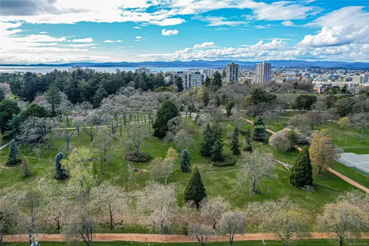 Open House Sat April 11th 11-1. Location truly is everything. Situated directly across from the lush greenery of Beacon Hill Park and just one block from the rugged beauty of Dallas Road and the ocean. This 2-bedroom, 1-bathroom top-floor corner unit is bathed in natural light. Offering a spacious, sun-drenched floor plan, this clean and well-maintained residence is move in ready. This is a leasehold building with lease in place to 2073. Leasehold fee includes taxes, heat, water, management. Whirlpool, sauna and rooftop deck is wonderful. This is the best value in Fairfield. Had been used as a rental fetching $2595.00 per month.