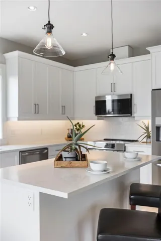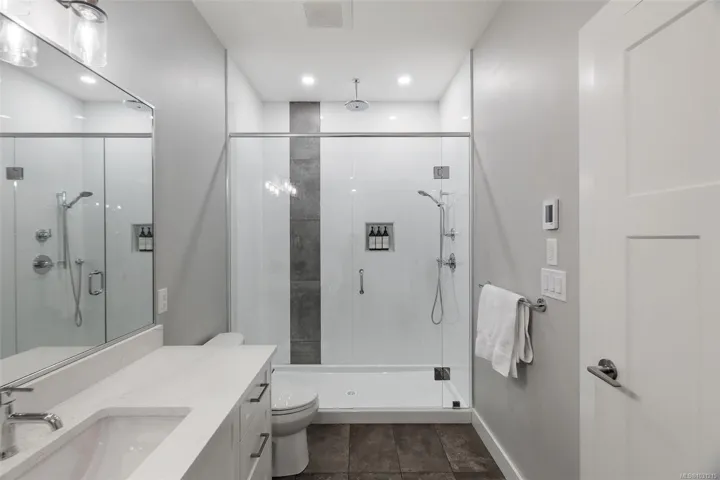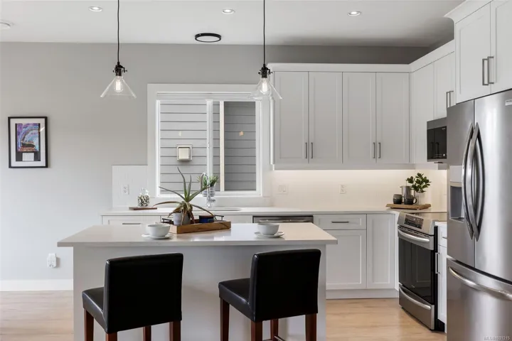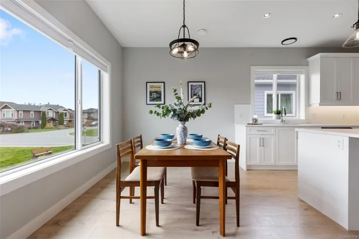Quality-built by Silver Cedar Construction, this brand-new Phase 6 home offers a sophisticated floor plan designed for modern living. The upper level features a bright, open-concept layout with 3 bedrooms and 2 full baths. The chef-inspired kitchen boasts premium white shaker cabinetry, quartz countertops, and designer finishes. The living room, anchored by a cozy gas fireplace, flows seamlessly into the dining area—perfect for entertaining.The lower level includes a versatile den and a massive mudroom for the main house, plus a fully self-contained 1-bedroom legal suite—an ideal mortgage helper or space for extended family. Stay comfortable year-round with the high-efficiency “Mini-Duct” heat pump system, providing both heating and air conditioning.Ideally located within easy walking distance to schools, parks, and Sooke Centre. Experience the best of the Woodland Creek lifestyle!