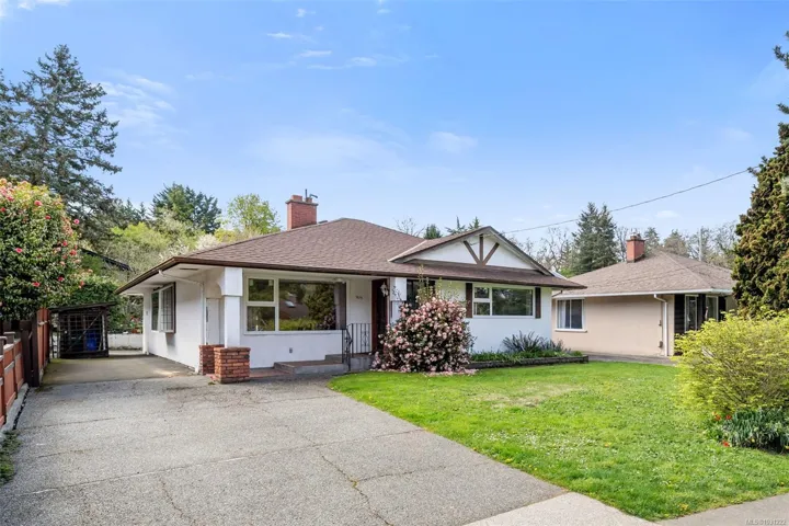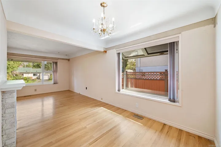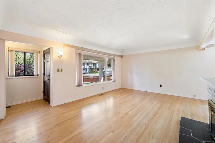 Tucked into a quiet Saanich neighbourhood, this 3 bed 1 bath home offers warmth, space, and beautiful outdoor living. Filled with natural light, the main living area features large windows and a cozy fireplace, flowing into a spacious dining room. The kitchen offers wood cabinetry, additional pantry/storage, and connects to a comfortable family room with gas fireplace that opens onto a covered deck—ideal for year-round indoor-outdoor living.