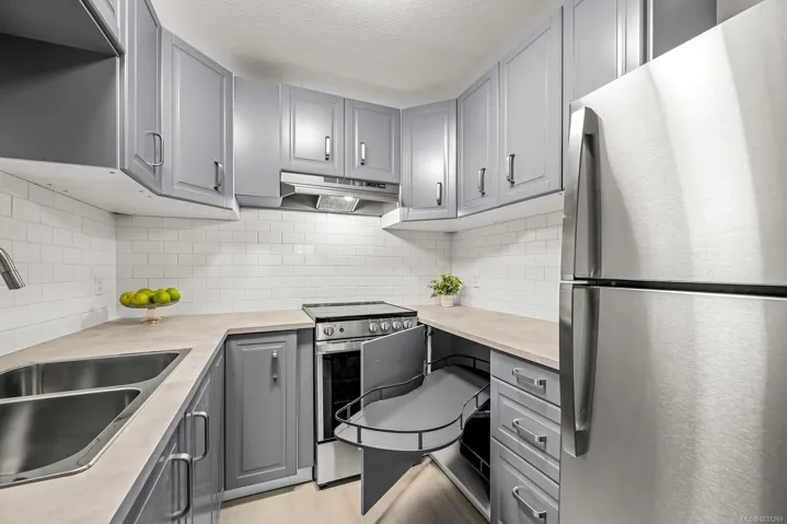 Lovely updated 3-bedroom, 1-bath condo in a convenient location. This move-in-ready home features a beautifully updated kitchen with new appliances, refreshed bathroom, new flooring, lighting, and blinds. You’ll appreciate the generous storage space and the large covered deck, perfect for enjoying year-round. The strata includes an elevator, allows 1 dog or 1 cat, has no age restrictions, and permits rentals (no short-term rentals), making this an excellent option for first-time buyers or investors.