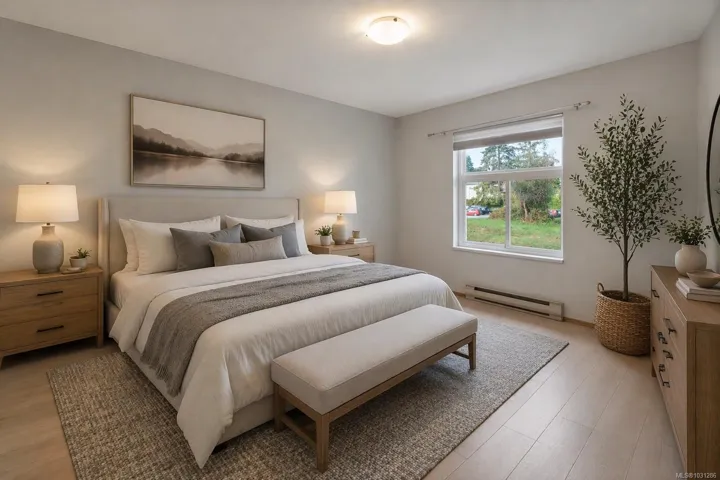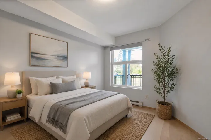 QUALITY RENO ON THE QUIET SIDE! Two parking stalls, two bedrooms and two full bathrooms with in-suite laundry and located in the desirable C Building on the back side. A spacious primary bedroom features an fully-updated ensuite with a walk-in shower and beautiful vanity. Brand new neutral flooring and paint throughout the entire apartment as well as horizontal blinds. All appliances included and a new hot water tank in 2022. Low strata fee, unrestricted rentals, no age limit and pets permitted with some restrictions. Lots of visitor parking. This area has been elevated since the addition of the new shopping center at Berkey’s Corner. Now you can walk to shopping and dining as well as schools and recreation making it the perfect rental, starter, retirement or family home. Immediate possession available and move in ready!
