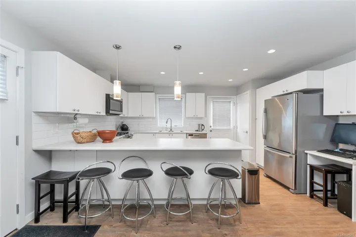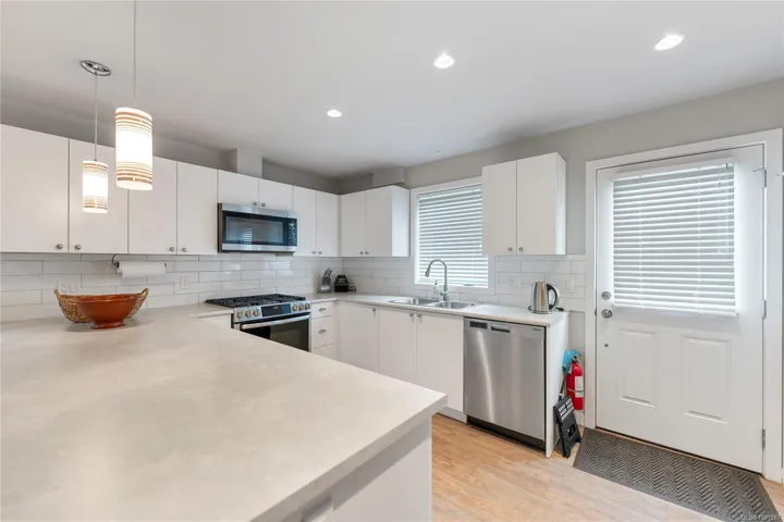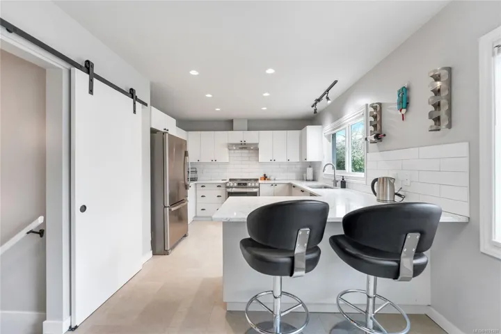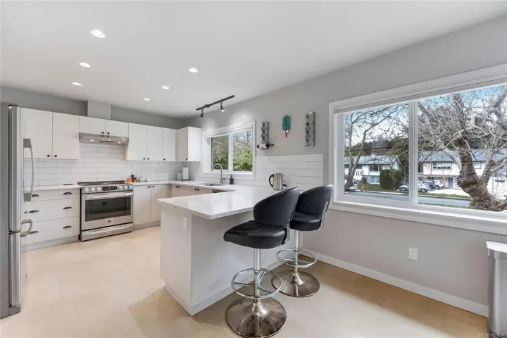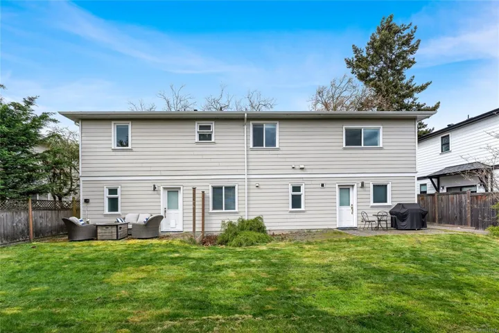 Nestled in a tree-lined neighbourhood just moments from the trails of Mt. Doug, this beautifully updated home offers the ultimate in versatile living. The layout is perfectly designed for flexibility, featuring a main house upstairs and a downstairs legal suite that provides everything needed for everyone to have their own space. The upper floor features three bedrooms, a spacious new kitchen, a dedicated dining room, a bright, sunny lounge centred around a cozy gas fireplace, and a versatile flex room, perfect for a home office or media room. The downstairs suite houses two bedrooms, two bathrooms, and an open-plan kitchen, living, and dining area with its own laundry. Outside, the fully fenced backyard serves as a private oasis perfect for summer BBQs and outdoor lounging, complemented by two additional storage sheds and a spacious single-car garage equipped with an EV charger. Ideally located, just steps away from public transport, local shops, and world-class hiking.
