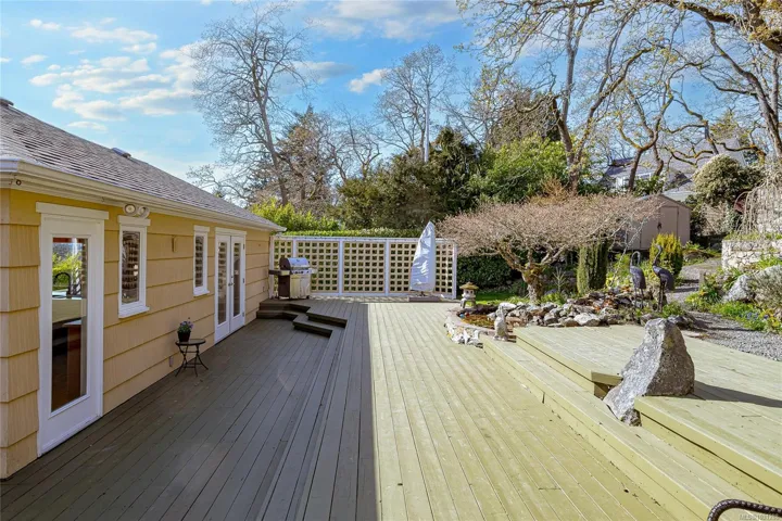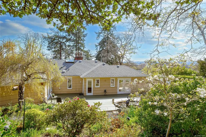 *Open House Sun Apr 19, 1-2pm* Nestled on more than 1/3 of an acre with southwest views toward the Sooke Hills this lovely 1940’s home has been tastefully remodeled throughout, while preserving many character elements within. The primary suite is a luxurious retreat with fireplace, spa ensuite & French doors that open to a very private deck & garden. The kitchen is designed for the gourmet with 2 islands, stone countertops, wood flooring and adjoining family area with gas fireplace. Bright, formal dining & living rooms with feature fireplace, a 2nd bedroom and 3-piece bathroom with laundry complete the main floor. Downstairs is a 3 bedroom suite with separate laundry & a large open kitchen/living room with fireplace. The stunning gardens extend throughout the rear of the property with water features, mature plantings, stone masonry walls and flower beds. Workshop/garage plus ample parking. This property offers a private oasis in one of the most sought after central areas of the City.