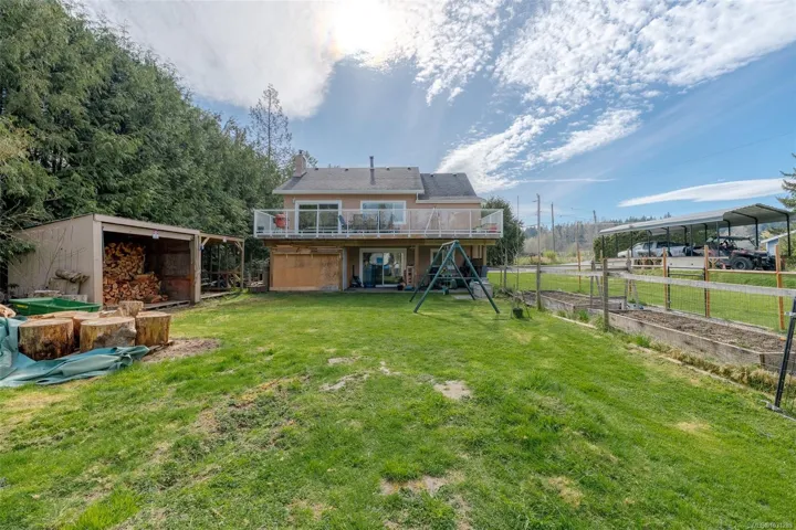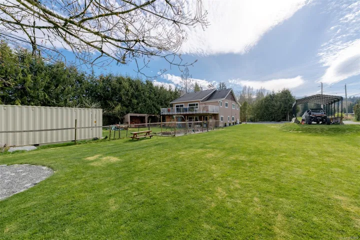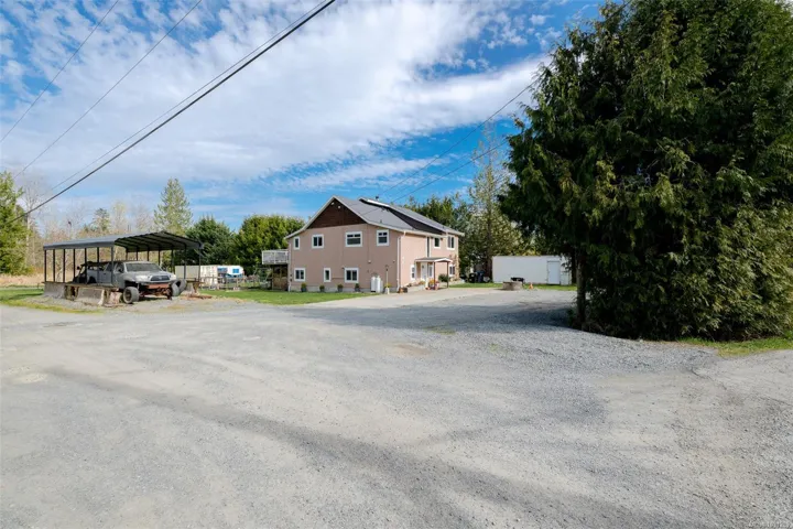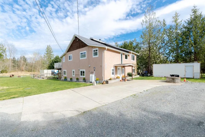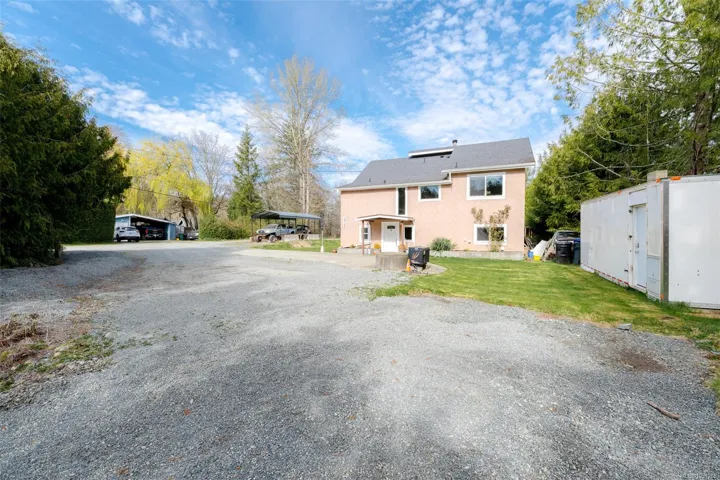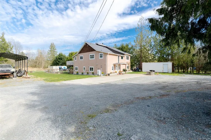 Tucked away at the end of a quiet no-through country road, this flat and fully usable half-acre offers both privacy and functionality. The spacious 2800+ sqft 2-storey home is thoughtfully designed for a large family, w/ 3 beds, 3 baths, a rec room, and flexible space ideal for in-laws, including an in-home gym! Extensively updated throughout, the home is bright, sunny, and filled with natural light. Enjoy a large family-sized kitchen that balances open concept living w/ a warm, cozy feel. Outside, the land is set up to be used—fully fenced garden w/ raised beds, wide open parking for RVs, boats, and more, and easy backyard access. Wood stove heat, drilled well with strong output, and economical utility costs. 20ft covered shelter for year round utility storage or projects! ALR zoning in place. A quiet setting just minutes to Ladysmith and Nanaimo, where properties like this are rarely offered. Fall asleep to the sound of frogs and wake to abundant wildlife! Your country oasis awaits!