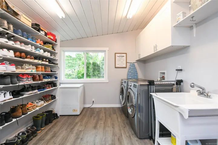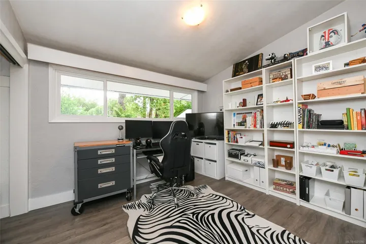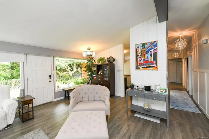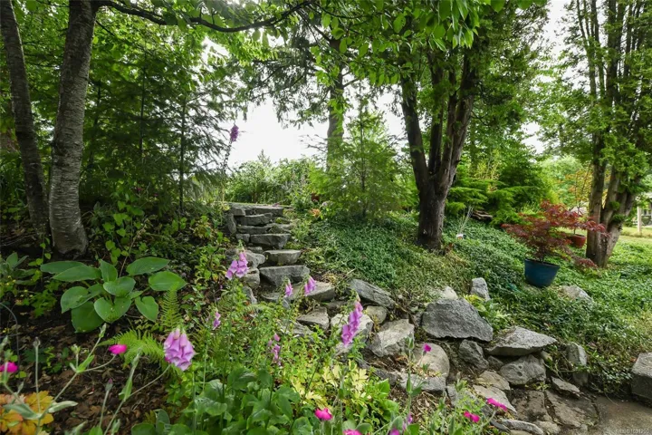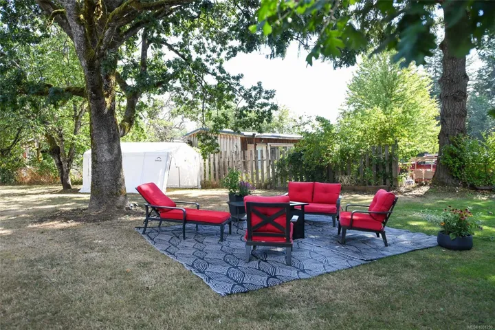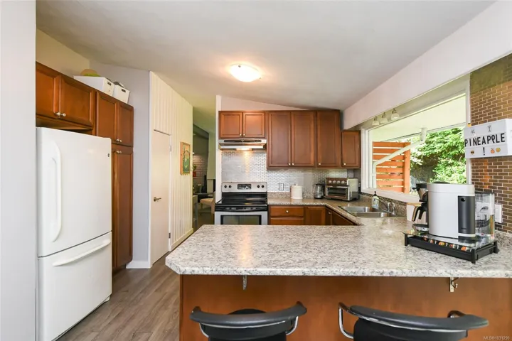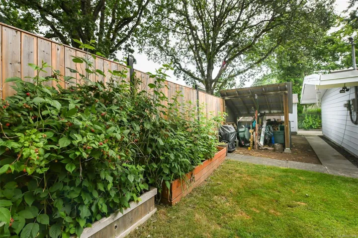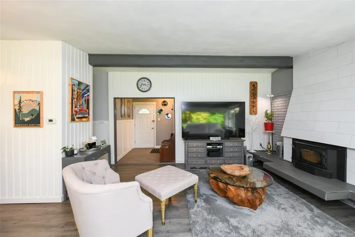 Mid-Century Modern Rancher on Oversized Lot in Courtenay Just minutes north of downtown Courtenay, this charming mid-century modern rancher sits on a spacious 0.34-acre lot with dual frontage on Island Hwy and Oakridge Drive. There’s plenty of room to park your RV, boat, or other toys. Inside, you’ll love the vaulted ceilings and vinyl floors that add warmth and character to the living room, complete with a woodstove insert for cozy, efficient heating in the winter. The updated kitchen features tile backsplash, modern cabinetry, and a convenient peninsula for extra prep space. Offering 3 bedrooms, 1 full bathroom, and a generous utility/storage room. Step outside into a beautifully private yard dotted with Garry oaks — ideal for entertaining, gardening, or simply enjoying the outdoors. With new R-SSMUH zoning, explore the potential to add a secondary suite, carriage house, granny flat, or even investigate subdivision options (verify with the City of Courtenay)