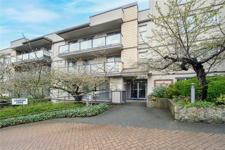 Quadra Village GEM! Don’t miss this beautiful 968sq ft 2br/2bth suite in prime Quadra Village location. The highly functional floorplan is on the quiet side of the bldg w/ tranquil treetop views. The spacious LR/Dr has a gas fireplace (gas incl in strata fee) modern kitchen w/ Lg pass thru to the living area + convenient flex space that can be an eating nook or work area. Enjoy a drink or a tasty bbq on the Lg balcony w/ rare access from both bedrooms & kitchen(a feature most suites do not offer). Primary has room for everything you need (*note custom built swinging shelf to balcony!) Lg walk thru closet & 4pc ensuite. The 2nd Br is equally spacious w/easy access to the addt’l 4pc bth. This friendly bldg has all needed amenities of at your doorstep. Enjoy funky cafes, restaurants, grocery shopping, liquor store + recreation at Crystal Pool, Victoria Curling Club, Art Collective + Save On Foods Centre. Direct transit routes to UVic/Camosun or walk dwntn. Pet friendly! 1 pkg space incl