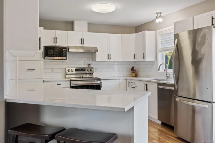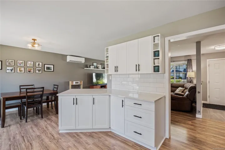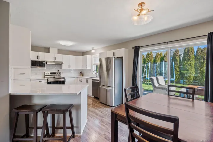 Tucked into a quiet East Courtenay neighbourhood, this beautifully maintained home offers a great blend of comfort, privacy, and convenience. Bright and airy, the main level features a functional layout with natural flow and defined living spaces. The kitchen has been thoughtfully updated with quartz countertops, refreshed cabinetry, stainless appliances, and an eating bar for gathering. Upstairs are three bedrooms plus a standout bonus room above the garage, a light-filled, versatile space with skylights ideal as a fourth bedroom, office, or extra living area. The primary bedroom includes a walk-in closet, full ensuite, and Beaufort mountain views. Outside, the fully fenced yard is private and sun-soaked, perfect for relaxing or entertaining. With a newer roof (2020), heat pump, RV parking, and a location close to the hospital, trails, schools, and daily amenities, this is a home that makes life feel easy, connected, and enjoyable.