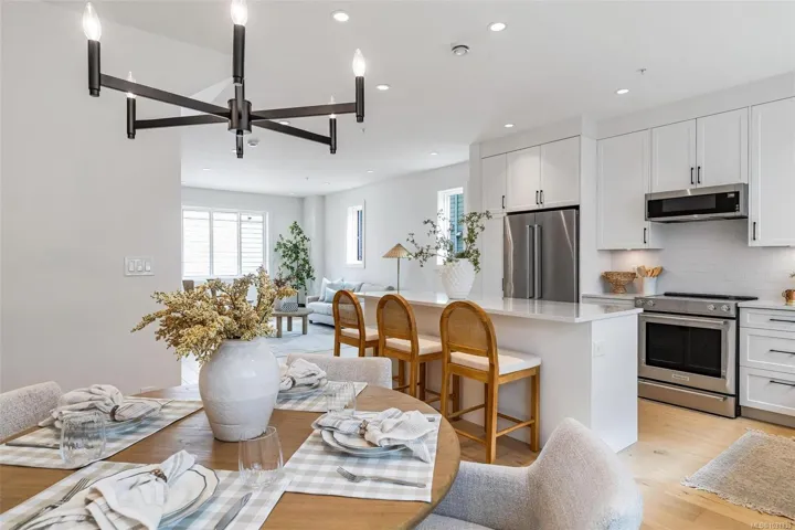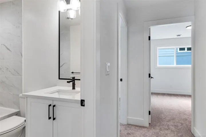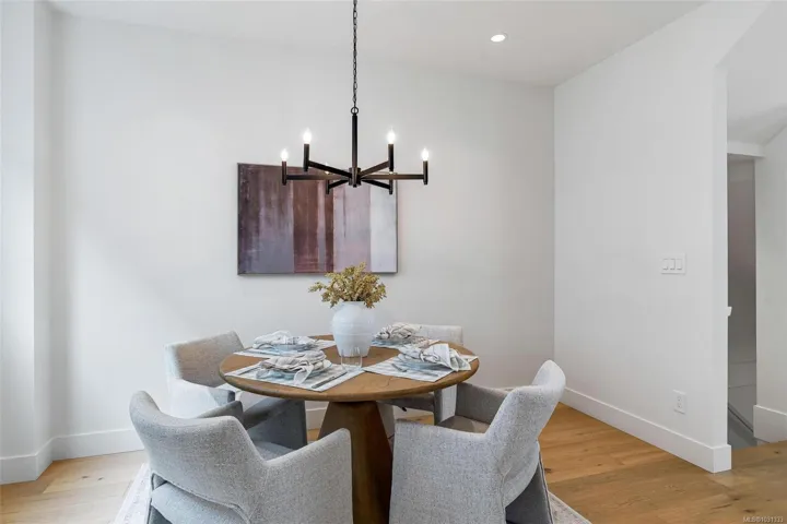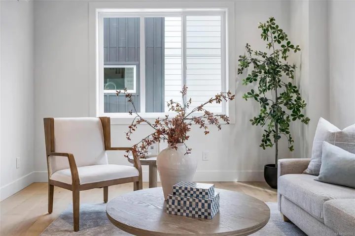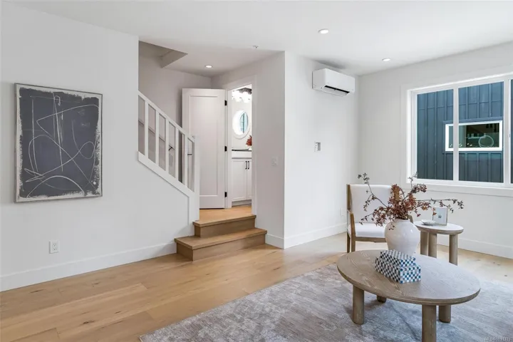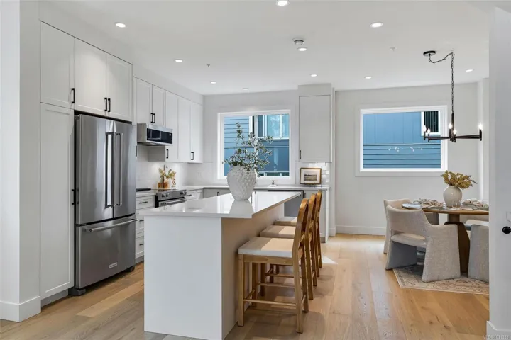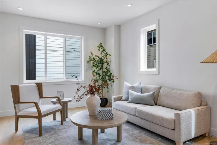 **Open House Saturday 1-3pm** Proud to present The Bayside Towns on Fifth – a curated collection of 16 townhomes in Sidney’s most desirable neighbourhoods, ROBERT’S BAY. Offering a modern farmhouse aesthetic & varied layouts appealing to young families through to active retirees. This larger end location plan offers 3 spacious bedrooms on the upper level including the primary with ensuite. 4th bedroom or office located on the lower level with its own 3 pce bath. Light wide-plank hardwood throughout entry and main level plus large picture windows that will keep the home light & bright. Custom white kitchen cabinets with quartz counters, generous island & stainless appliances. Efficient heat pump for year round heating and cooling. In-floor heat in all tiled bathrooms. Interlocking brick, fully fenced southeast facing patio with irrigation. Over 60% now sold – close to beaches, trails & easy walk to Beacon Ave, this is a 12/10 location! More homes available, starting from $899,000 + GST