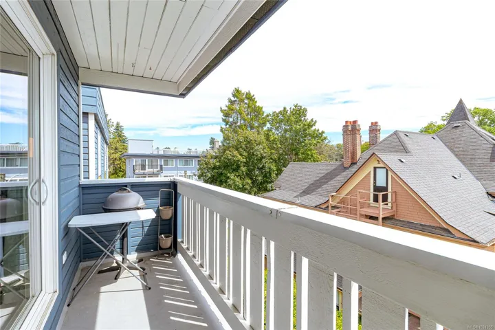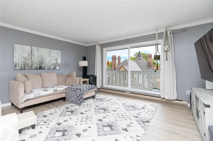 Welcome to this spacious and well maintained 2-bed, 2-bath, top floor condo! This home features 2 separate entry doors, one at the front & one at the rear, for added flexibility & convenience. With windows on 3 sides & a skylight, this home is flooded with natural light & offers southwest exposure w/glimpses of the Olympic Mountains. The layout is functional & elegant, featuring crown molding throughout, luxury vinyl plank flooring, a large south facing balcony, in-suite laundry, & in-suite storage. The primary bed includes a 4-piece ensuite & tons of closet space. Outside, enjoy a shared garden space, easy access to separate bike storage, & additional storage lockers. Located just a short stroll to Government House, Craigdarroch Castle, & the The Belfry Theatre. You’re also in walking distance to downtown, cafes, restaurants, & the charming Fernwood neighbourhood. Offering space, light, & location, this condo is a true gem in the heart of Victoria.
