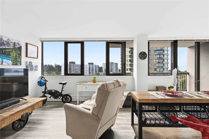 With absolutely amazing proximity to the camas field and the turtle pond at Beaconhill park, this 10th floor newly renovated ocean view condo offers a chance to enter the Victoria real estate market as an investor, a first time home owner or a recreational owner of a perfect pied-a-tere in between downtown Victoria and the cruise ship dock at Ogden point. You will love the easy flow layout, ample closet space and the perfect size kitchen for entertaining. Enjoy the outdoor pool, indoor hot tub or pop down to the many beaches just a stroll away. Monthly fees include property taxes, heat and hot water. For investors, there is unrestricted rentals (6 months minimum). The building has secure underground parking and extra storage locker, with shared laundry and workshop. This is affordable living at its finest in Victoria.