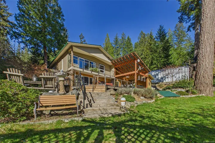 Set on 2.1 acres of walk-on oceanfront with approx. 280 ft of frontage, this private Cortes Island retreat offers southern exposure on a quiet no-through road. The custom-designed home captures ocean views from the main living spaces, featuring a well-appointed kitchen with granite island & stainless steel appliances. The spacious primary bedroom includes a private balcony, walk-in closet, and ensuite (dual sinks, soaker tub). Enjoy a propane fireplace, heat pump (2022), and a stunning west coast partially covered deck with hot tub overlooking the beautifully landscaped property (forested area, lily pond, and vibrant perennial gardens). *New insulated shop 752 sqft (2023), 200 amp & wood stove; plus 583 sqft garage. Backup diesel generator, RV parking, and expanded driveway complete this exceptional offering—just minutes to the grocery store, marina, post office and community hall. A rare oceanfront sanctuary where privacy, beauty, and island living come together effortlessly.