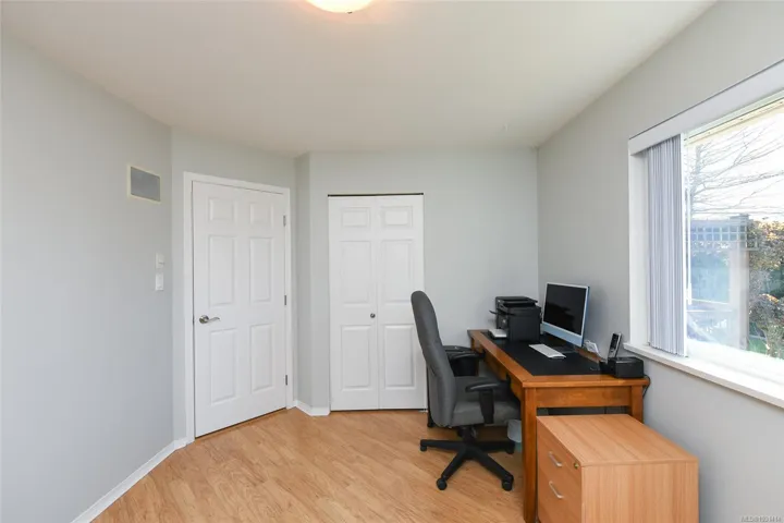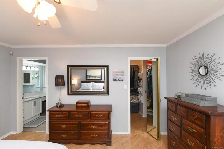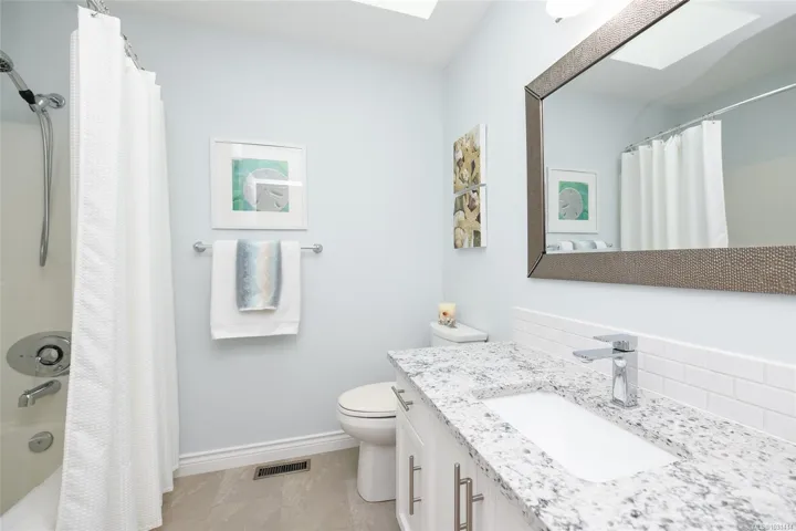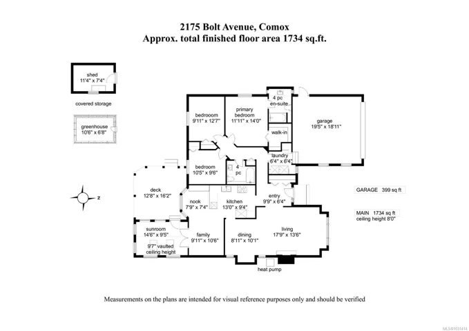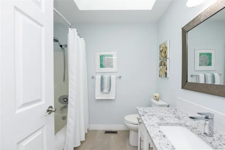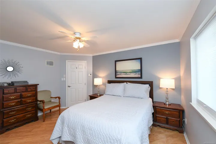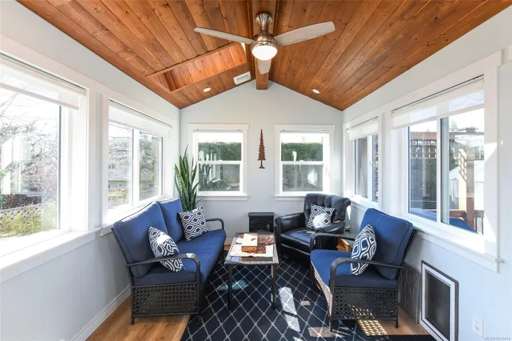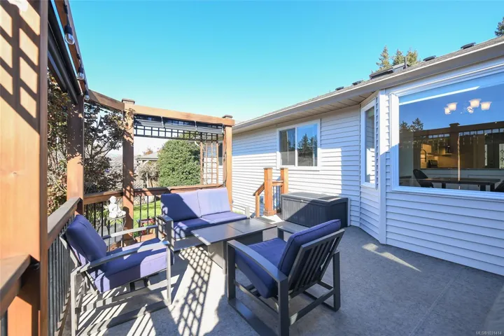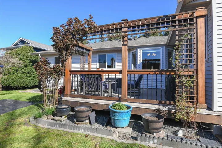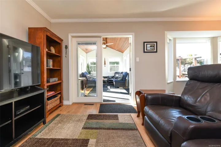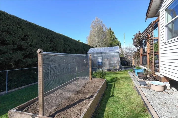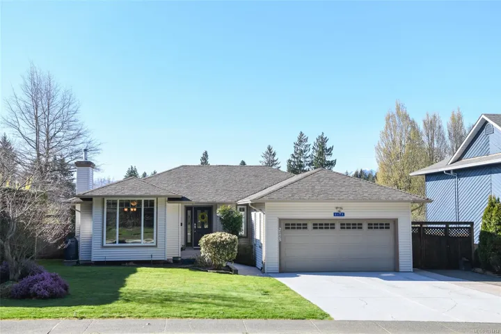 This immaculately cared for 1,734 sqft rancher is perfectly situated in a sought-after location adjacent to a park & within walking distance to shopping, walking trails & downtown Comox. This recently renovated home features a sunny kitchen with crisp white cabinetry, quartz countertops and stainless appliances, including a gas range. A breakfast nook flows into the adjoining family room, where French doors open to a fantastic four-season sunroom with vaulted, wood slat ceilings & opening skylights, professionally built with permits. The fabulous layout offers both a formal living room with a cozy gas fireplace & a separate dining room. The spacious primary bedroom includes a walk-in closet & 4-piece ensuite. Step outside to a private, sunny south-facing backyard complete with a patio & sunshades, perfect for relaxing or hosting. Garden enthusiasts will appreciate the greenhouse, garden shed with power & irrigation system front & back. RV parking! This lovely home is the whole package!