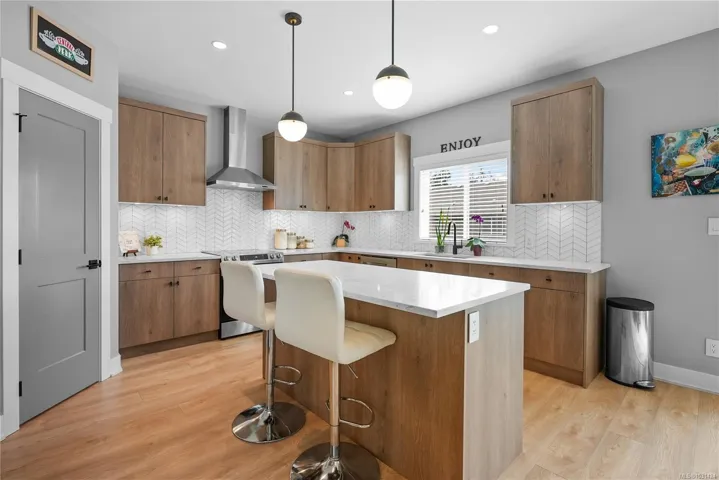 Beautifully designed family home, 5 bedrooms and a legal flexible 2-bed suite, this elegant property is ideal for large family gatherings and entertaining. Open concept floor plan, gourmet kitchen with walk-in pantry, dining area, living room with gas fireplace, powder room & ductless heat pump for efficient heating & cooling. Upstairs are 3 spacious beds, laundry and a 4-pc bathroom, the primary bedroom with walk-in closet & ensuite. On the lower level is 2-bed suite with separate entrance, laundry, separate hydro panel, and covered patio. On-demand gas hot water heater, fenced backyard with irrigation system and pre-wired for a hot tub! Easy access to nature and amenities, recreational paradise is just minutes from your front door. Spend weekends exploring the forests & hiking trails, beaches or play a few holes at nearby Olympic View Golf Course. Young families will appreciate the short walking distance to elementary and middle schools.