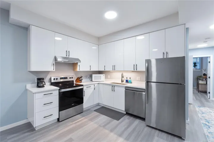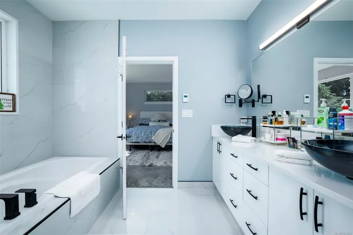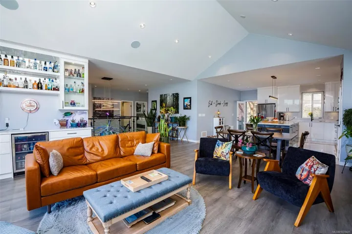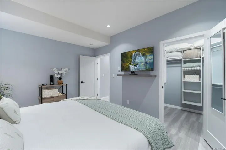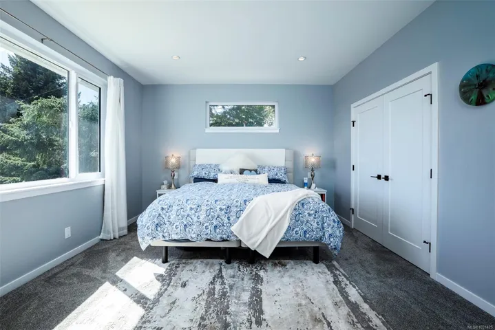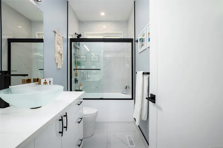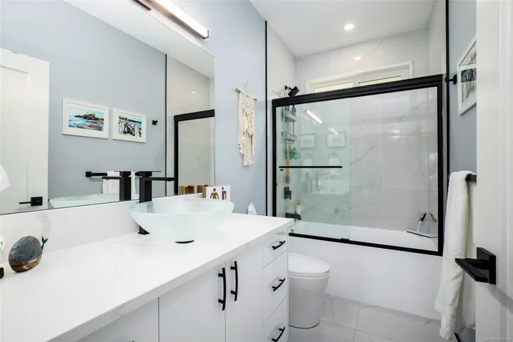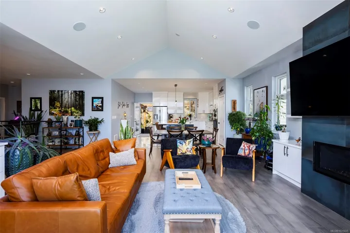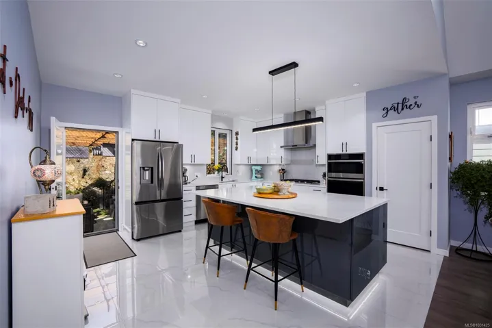 Captivating new build – NO GST. A stunning contemporary with over 3000 sqft of elegance in an open modern design complete with LEGAL SUITE (vacant but did $25,000 income last yr). Offering 5 beds, 3 baths, this beautiful home offers a perfect level of luxury & comfort w/open-concept layout with massive kitchen island, built-in bar cabinet, & a floor-to-ceiling feature wall wgas F/P. High-end Samsung smart appliances & quartz countertops throughout main home. The primary bdrm suite is a gorgeous retreat with a large walk-in closet & a spa-like ensuite featuring a rain shower, steam function, heated floors, & 6’ soaker tub. Home is wired solar-ready w/engineered trusses & is all set with backup generator panel. The private back yard is a real sanctuary with new hot tub, gazebo & pond. 4-camera security system, oversized garage w/Level 2 EV & is solar inverter wired. Covered front deck with ocean & city views, all on a low-maintenance yard in a quiet/friendly neighbourhood. See 3D tour