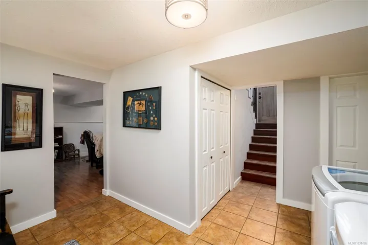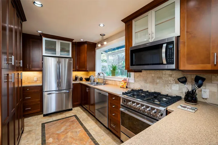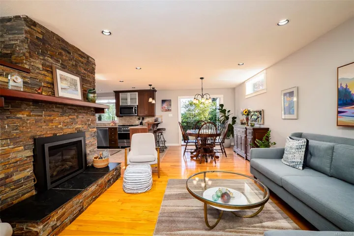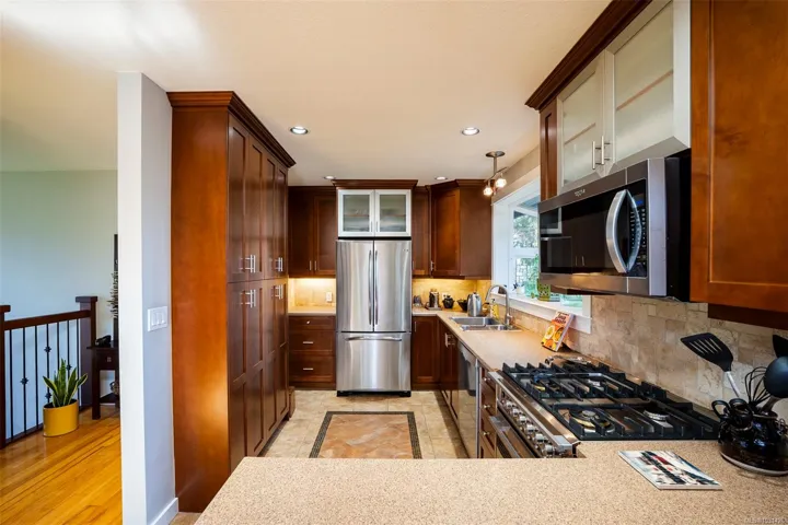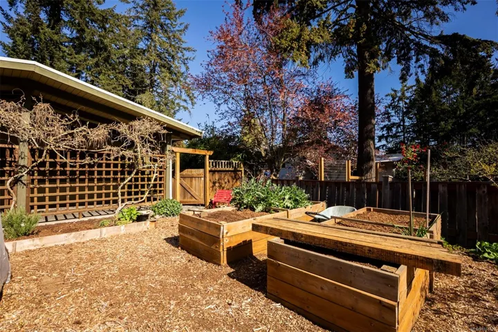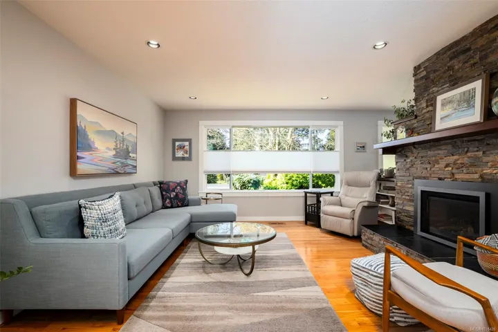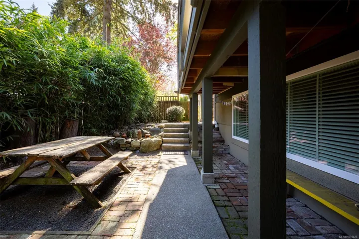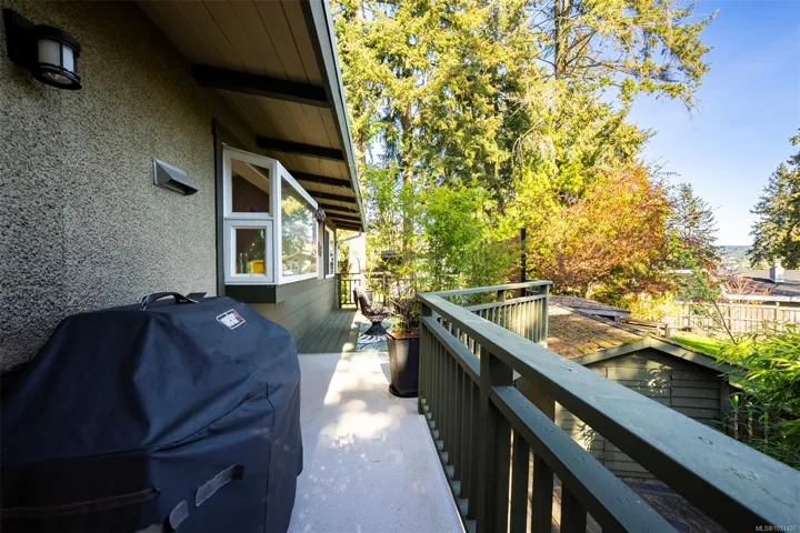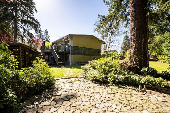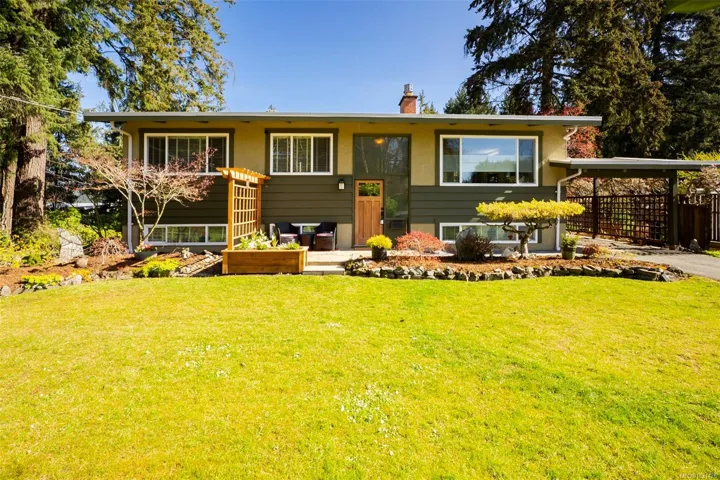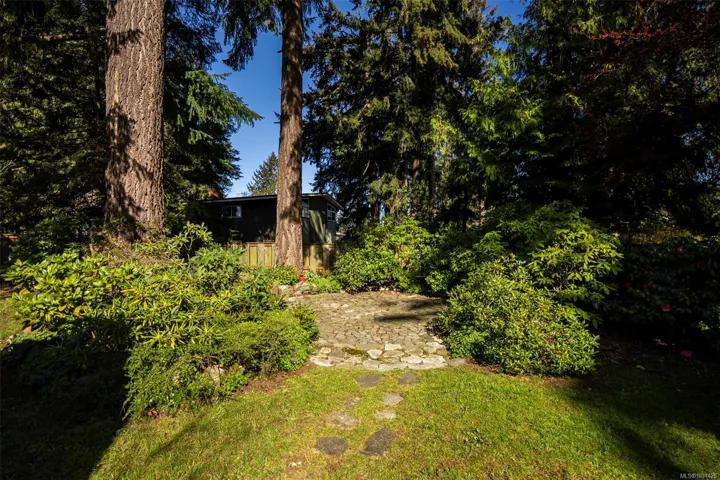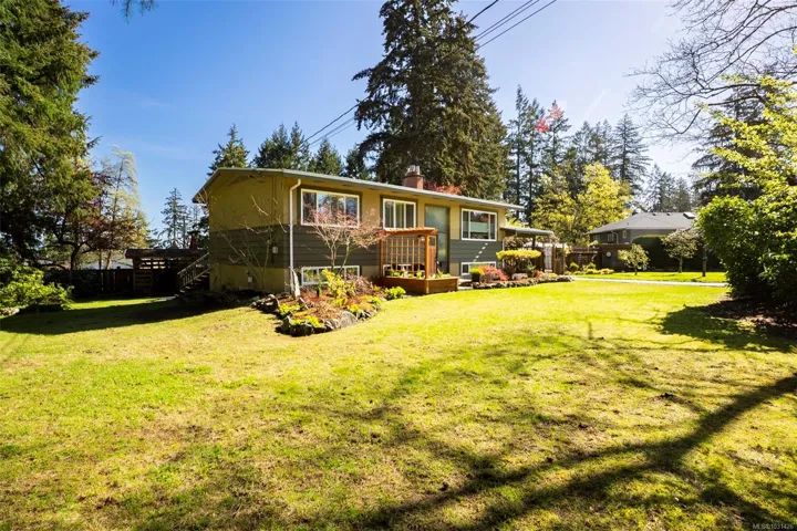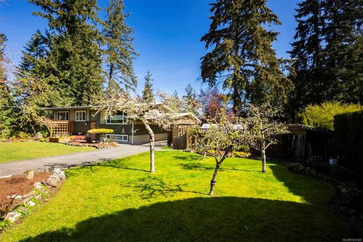 The magical feeling of Lynburn in Departure Bay. City living but feeling miles away on a park like 1/3 acre lot is this lovely mid-century, well maintained by the same owners of 37 years. With 4 bdrms & 2 baths it has been thoughtfully renovated & maintained with numerous upgrades including a newer Kitchen with S/S appliances including Fisher & Paykel gas range. Both bathrooms have been renovated incl the lower level Primary bdrm Ensuite. Lots of recessed lighting, vinyl windows, 2 cozy gas F/Ps & refinished oak floors & H/E NGas furnace. Lower family room is a great retreat for TV watching or kids play plus a utility room offers great storage. The open lower foyer with laundry makes an awesome mud room to come & go from the yard. Enjoy outside with a lovely South facing patio at the front & a large full length sundeck at the rear leading you to a stunning private Oasis w/fenced garden w/raised beds to cultivate your own harvest & 11 Rhodos just starting to open. See 3D tour