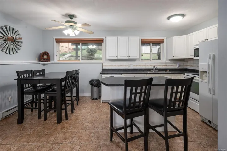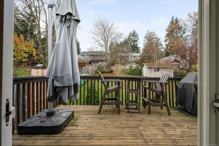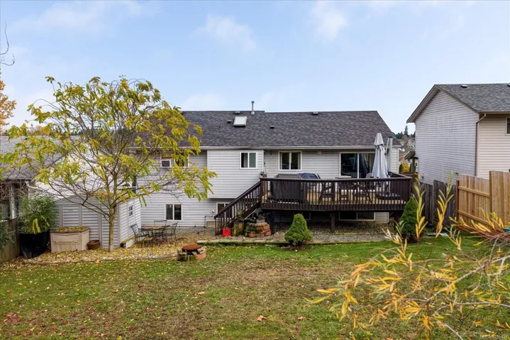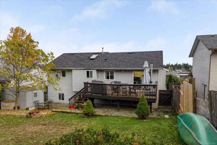 Enjoy peek-a-boo views of Gabriola Island from this clean & well maintained 4-bedroom, 3-bathroom home located on a quiet no-through street close to all level schools & VIU. The main level features a gas fireplace, a charming hutch inset, updated lighting, & modern paint colors throughout. A skylight brightens the 4-piece bathroom, while the fully fenced backyard offers a spacious retreat with a 200 sq ft sun-filled deck—perfect for summer evenings. The yard becomes a true haven in warmer months, complete with a big workshop for projects or storage. The roof is about six years old, On demand hot water was installed in 2017. Downstairs, 1-bedroom unauthorized cozy suite with separate entry & separate laundry, Therapy tub/shower in bath adds versatility for family or income. With plenty of parking on driveway, & front yard edge, & along the street, plus a generous backyard, this home blends comfort, functionality, & charm in a desirable, peaceful location. All measurements are approx