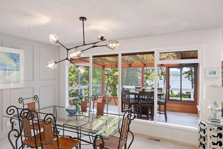 Tucked along the shoreline of North Saanich, this 1-acre property showcases one of the finest West Coast oceanfront living opportunities in the Victoria area. The home blends comfort & privacy w/panoramic views across Swartz Bay toward Piers Island creating a sense of calm from the moment you arrive. Over 2,400sqft of bright inviting living space spans across 2-levels w/room to relax, entertain or simply to take in the scenery. Lg windows frame the water in every direction & ensures sunlight throughout the day. Step beyond the home & discover a natural retreat w/winding garden paths, mature trees, a hot tub, & a cozy cabin overlooking your sheltered bay-front equipped w/your private mooring buoy. The result is a space that feels personal & full of possibility. R-2 zoning offers a rare opportunity for investment & future subdivision (buyer to verify). The location is ideal w/Canoe Cove Marina, the Stonehouse Pub within walking distance & minutes to the Ferry Terminal & Victoria Airport.