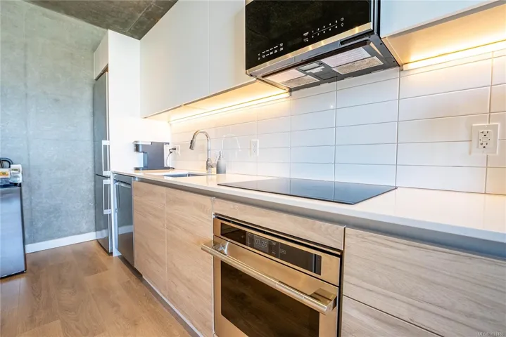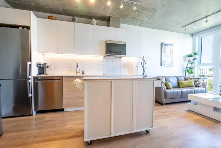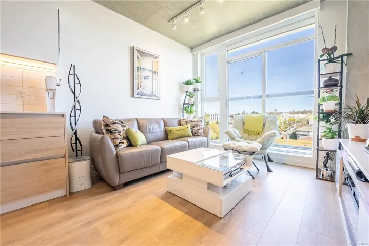 OPEN HOUSE SAT APR 18TH, 11am-1pm. Welcome to The MOD, an iconic steel-and-concrete building in the heart of downtown Victoria. This bright, efficiently designed 1-bed, 1-bath home offers 492 sq ft of thoughtfully planned living, ideal for first-time buyers, investors, or those seeking low-maintenance urban living. Perched on the 8th floor, it features floor-to-ceiling windows with open city views and abundant natural light. The contemporary kitchen includes quartz countertops, modern cabinetry, and a clean design flowing into the living area. A smart layout maximizes space with in-suite laundry and a private bedroom retreat. Elevated positioning enhances light and reduces street noise. The MOD is pet- and rental-friendly, with bike storage and a shared outdoor area. Steps from restaurants, cafés, shops, and nightlife, and close to Cook Street Village, Beacon Hill Park, and the Inner Harbour—this is downtown living at its best.