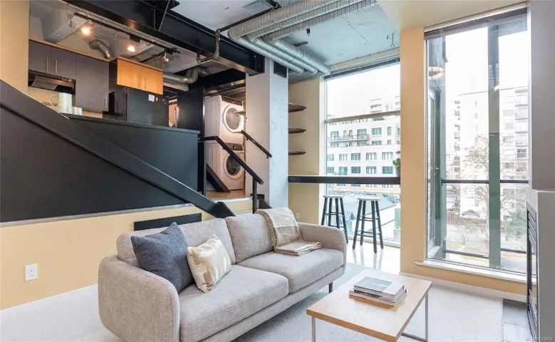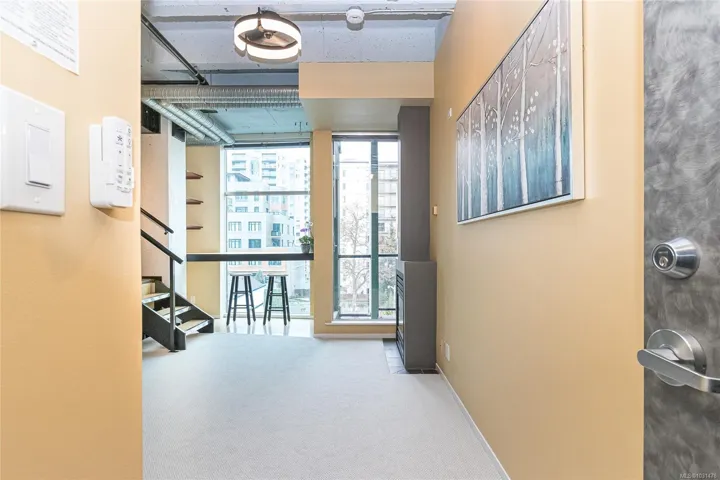 *Open House Sat April 18, 11-12pm* Discover exceptional value in the heart of Downtown Victoria! This bright and stylish studio offers the perfect blend of comfort and convenience which includes a cozy gas fireplace. The open-concept features high ceilings, floor-to-ceiling windows, and brand-new carpeting. Enjoy the ease of in-suite laundry, a raised modern kitchen, and a well-designed 4-piece bathroom with impressive storage for a studio layout. Situated in The Mosaic, a solid steel and concrete building zoned for live/work, this property offers excellent flexibility, with strata permitting both pets and rentals. Ideally located between Cook Street Village and Oak Bay, you’ll be steps from cafés, restaurants, parks, groceries, transit, and scenic walking and biking routes in every direction. Additional highlights include a secure storage locker and bike storage, making this an outstanding opportunity for homeowners and investors alike in one of Victoria’s most vibrant neighbourhoods.