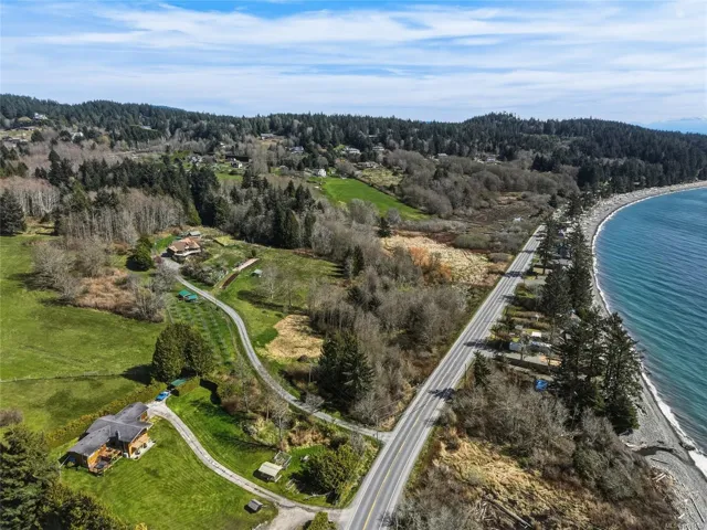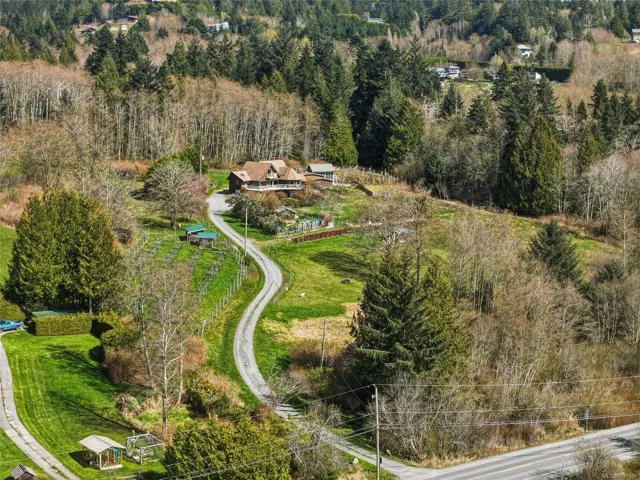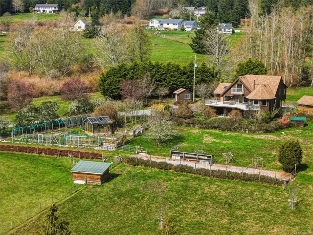 12 acres of semi oceanfront farmland w/ fish bearing ‘Orveas Creek’, ocean view, once home to Tugwell Creek Meadery, this 4 bd/3 bth home, nearly 3000sf, includes licensed AirBnB 1 bd suite below & add’l AirBnB loft cabin – excellent income providers! Renovated by legendary Sooke builder, Larry Alexander, nods to Sooke community found throughout – from wood & stone elements, to fixtures created by local artists. Enjoy views of the Strait of JdF & Olympic Mtns captured by oversized windows throughout main, or from tub in A-frame primary bedroom. South exposure, rich & plentiful soil & sloping topography contributing to abundance of ground water are some of the features that have made this estate a success over the years. Outbuildings include paddocks, chicken coop, accommodation, production & storage, placed amongst defined pastures, gardens & more. Gordon Beach access across the road, great zoning, West Coast Rd frontage offering easy to find access – tons of income potential!