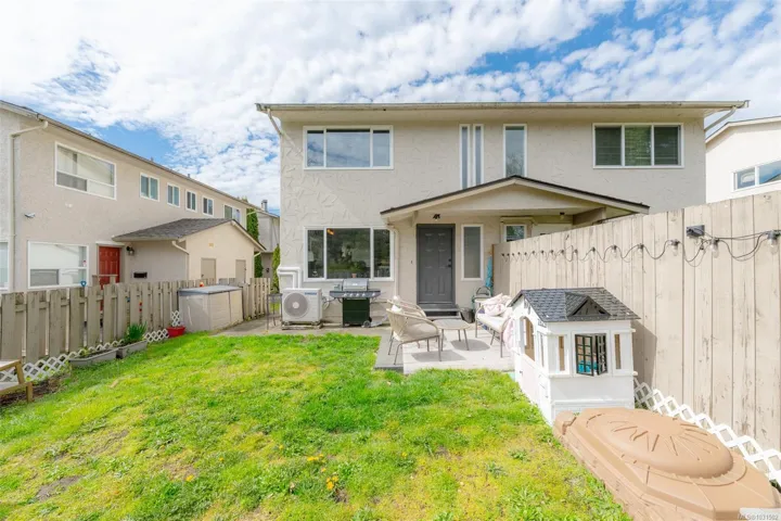 Tucked into a quiet, private pocket in the heart of Nanaimo, this updated home blends comfort and convenience. With 3 bedrooms upstairs and living spaces below, the layout is perfect for everyday living and entertaining. The modern kitchen is both stylish and functional, while a dual-head heat pump and new smart hot water tank add year-round comfort. Enjoy a fully fenced backyard, ideal for pets, kids, or relaxing (dogs allowed!). Plus a separate storage unit right out front. Located just a short walk to Pryde Vista Golf Course and minutes to shopping, schools, and amenities, this home offers a rare mix of privacy and central living.