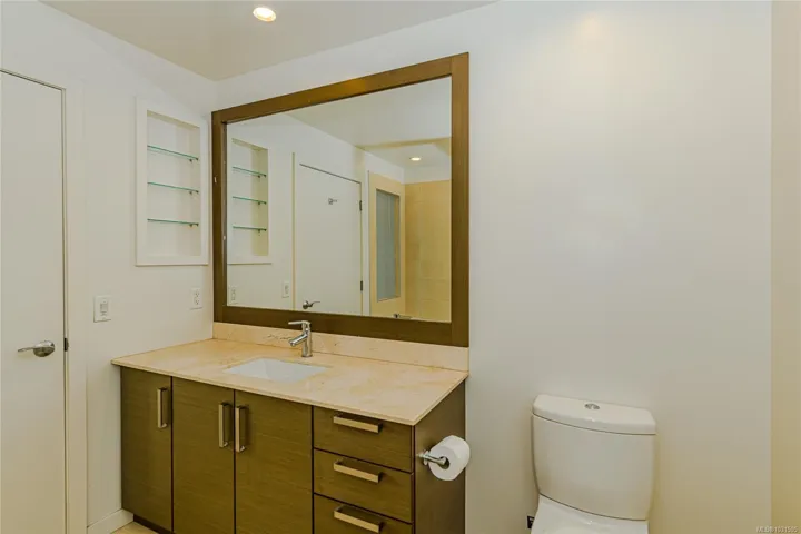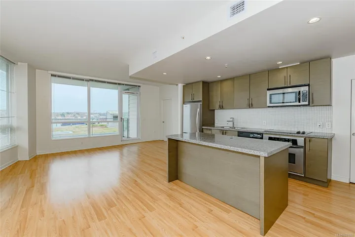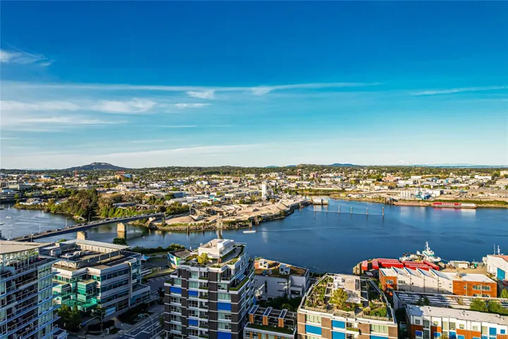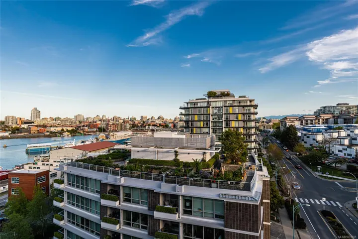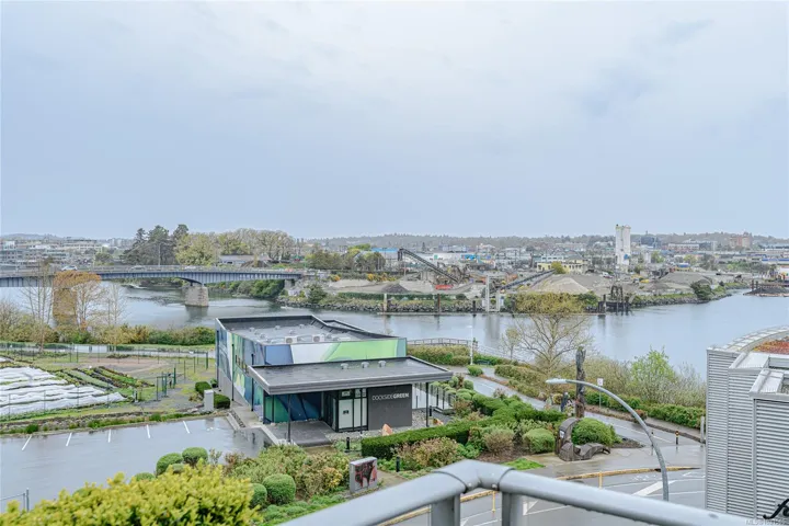 Welcome to Synergy at Dockside Green, an award-winning, LEED Platinum community in Victoria West. This bright 2 bedroom + den corner suite offers stunning views over the Upper Harbour and into the Gorge Waterway, with wraparound floor-to-ceiling windows filling the home with natural light and showcasing beautiful sunrises and evening cityscapes, enjoyed from both the main living areas and bedrooms. The open-concept living and dining area provides a thoughtful layout with separation between bedrooms, while the primary suite features a walk-in closet and a spa-inspired ensuite with a deep soaker tub. The den is ideal as a home office. Set along the Waterway/Upper Harbour, you’re steps to the Galloping Goose, Fol Epi, Café Fantastico, and the amenities at Westside Village, with downtown Victoria within easy walking distance. Pet-friendly with secure underground parking, a storage locker, and dedicated kayak and bike storage, making it easy to embrace an active waterfront lifestyle.