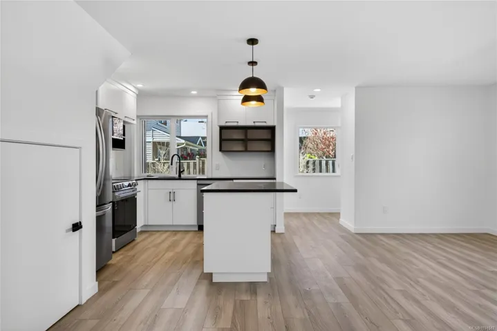 This 3-bedroom, 1.5-bathroom home offers a well-designed layout with bright, functional living spaces and a private patio ideal for relaxing or entertaining. Quartz countertops in the kitchen and bathrooms, along with a neutral palette, create a timeless and inviting interior. Built for efficiency and durability with TPO roofing, LP SmartSide siding, acrylic stucco, upgraded insulation, split heat pumps, and EV charger rough-ins. Includes dedicated parking, bike racks, and is move-in ready in a quiet, established neighbourhood.