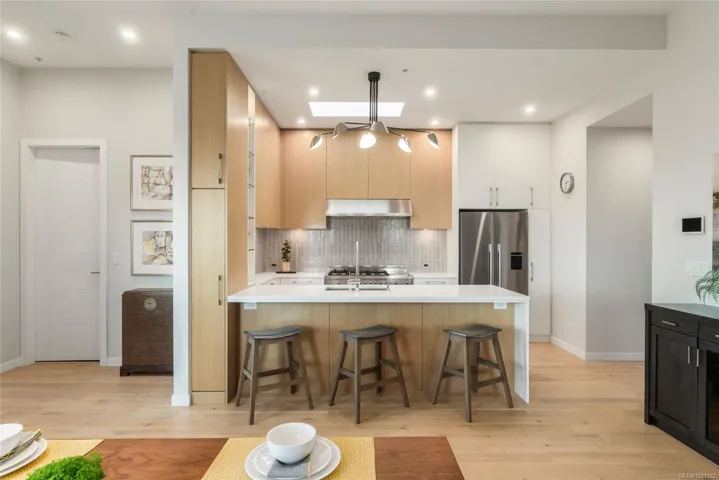 Discover unparalleled luxury living in the heart of one of Victoria’s most coveted locations. This stunning penthouse at the Bowker Collection places you steps from the charm of Oak Bay and Estevan Villages, where boutique shops, renowned restaurants, & artisan cafés await. Stroll to the sandy shores of Willows Beach, while enjoying quick access to downtown Victoria’s vibrant culture & amenities. Bathed in natural light from soaring 11-foot ceilings & skylights, this sophisticated corner residence offers two beds plus a versatile den/guest room w/ custom millwork. The kitchen feats: a 48″ Bertazzoni gas range, while the expansive living areas flow seamlessly to a bright west-facing terrace—perfect for entertaining. Retreat to your spa-like primary suite w/ its thoughtfully designed walk-in closet. Includes 2 secure parking spaces, storage locker, bike storage, & a well-managed strata. This is more than a home, it’s a lifestyle defined by elegance, convenience, & coastal sophistication.