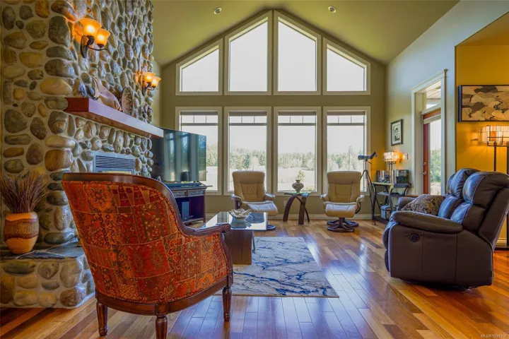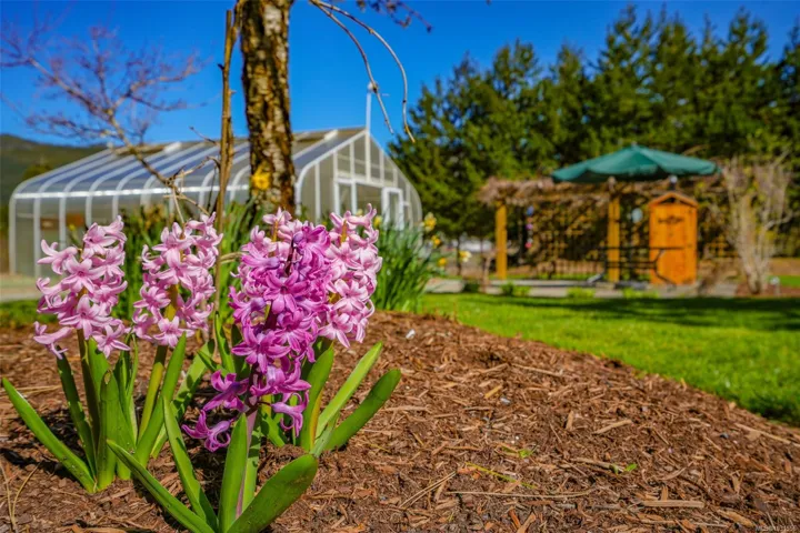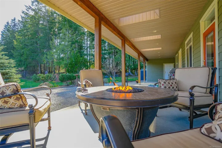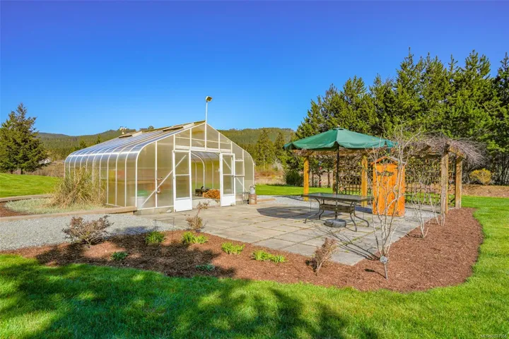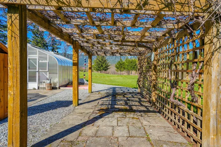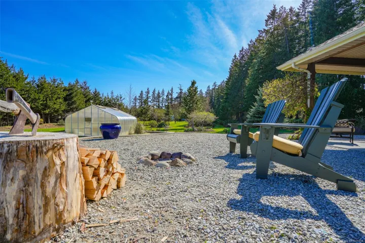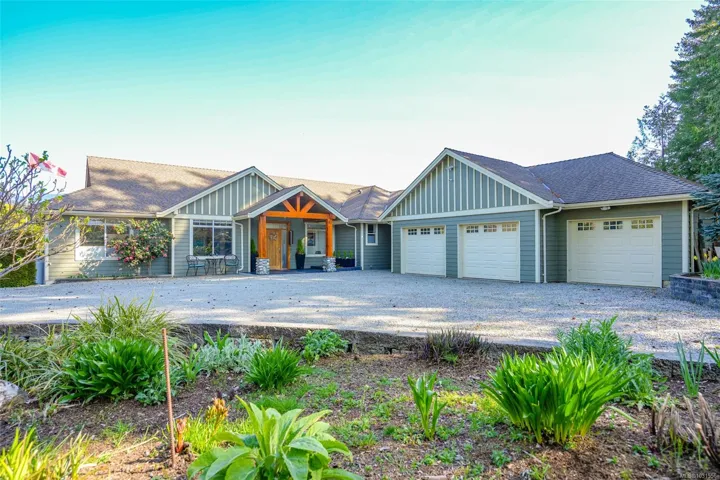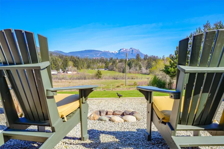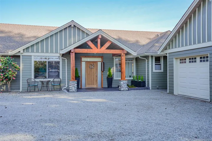 Located at the end of a no-thru road, this 3 bed, 2 bath rancher boasts a peaceful and private setting. Entering the front door you will notice the open-concept floor plan with 15ft high vaulted ceilings, a fireplace with floor-to-ceiling river rock stone, and views of Mt.Arrowsmith. The kitchen offers new appliances, Italian glass/stone backsplash, granite countertops, breakfast bar, while the dining area enjoys access to the 12 ft. x 47 ft. covered patio with gas firepit just steps away. The primary bedroom features an ensuite with heated tile floors, double sinks, glass shower and soaker tub. Finishing this beautiful home is two more bedrooms, 4 four-piece bathroom , laundry room, and access to the detached 3 car garage with 2 piece bathroom. Outside offers beautiful flower gardens, greenhouse with water/power, garden shed, fishpond, and fire pit. With access to the back of the property through John Road there may be a place to build a second residence or shop for all your toys.