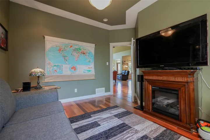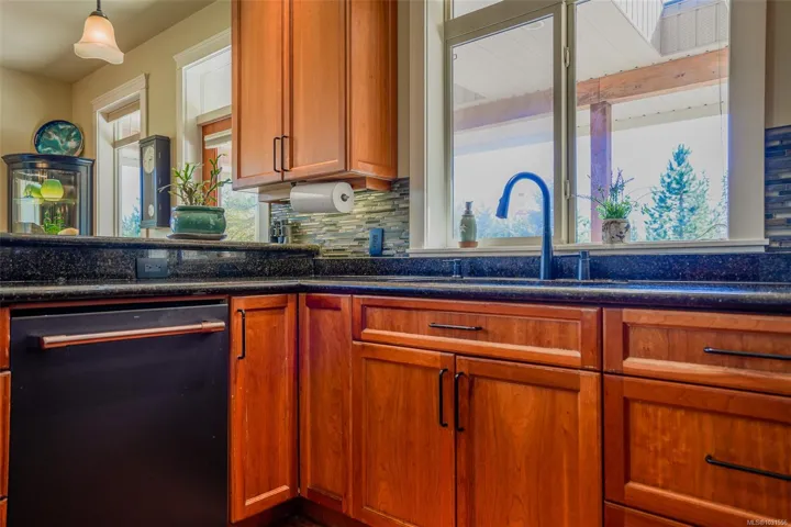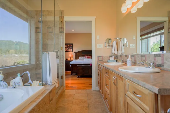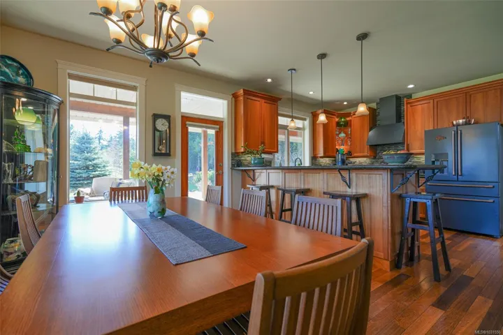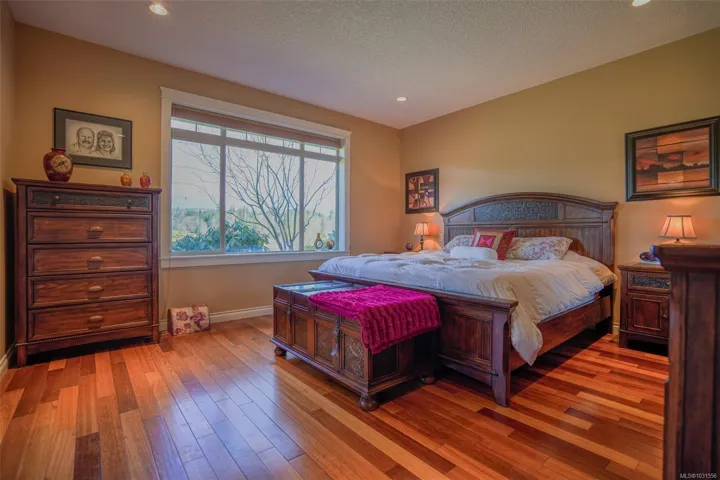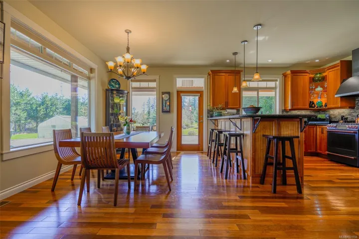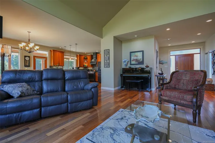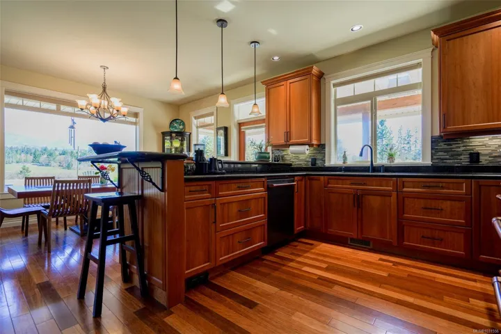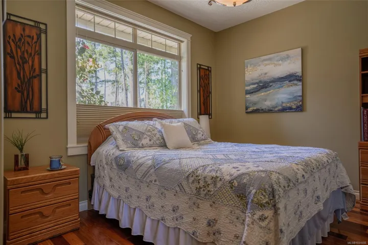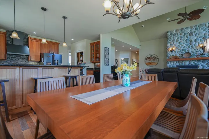 Located at the end of a no-thru road, this 3 bed, 2 bath rancher boasts a peaceful and private setting. Entering the front door you will notice the open-concept floor plan with 15ft high vaulted ceilings, a fireplace with floor-to-ceiling river rock stone, and views of Mt.Arrowsmith. The kitchen offers new appliances, Italian glass/stone backsplash, granite countertops, breakfast bar, while the dining area enjoys access to the 12 ft. x 47 ft. covered patio with gas firepit just steps away. The primary bedroom features an ensuite with heated tile floors, double sinks, glass shower and soaker tub. Finishing this beautiful home is two more bedrooms, 4 four-piece bathroom , laundry room, and access to the detached 3 car garage with 2 piece bathroom. Outside offers beautiful flower gardens, greenhouse with water/power, garden shed, fishpond, and fire pit. With access to the back of the property through John Road there may be a place to build a second residence or shop for all your toys.
