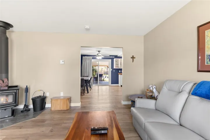 Move-in ready rancher with a functional layout and extensive updates throughout. The spacious living room features a bay window and cozy woodstove, creating a warm and inviting atmosphere. The updated kitchen flows into the dining area, where a south-facing slider brings in natural light and opens to the patio for easy indoor-outdoor living. Enjoy a large fully fenced yard with garden space and room for kids, pets, or entertaining. Both bathrooms are tastefully updated with modern finishes, and the home offers excellent storage with built-in shelving and generous closet space. Updates include windows and slider (2020), bathrooms (2020), new siding, updated electrical, hot water tank, baseboard heaters, laminate flooring (2025), and a brand new roof. Situated on a level 0.22-acre lot with RSSMUH zoning, offering future potential, and located within walking distance to TinTown, parks, and everyday amenities.
