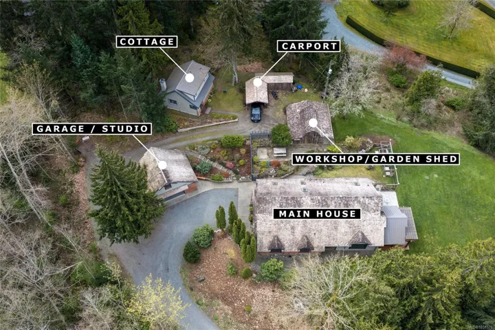The property includes a fully detached 1,100 sq.ft. 2-bedroom cottage, ideal for multi-generational living or as a premium mortgage helper. Large detached 2-car garage with an 300 sq.ft. bonus room above, plus a separate workshop & garden shed. Ample storage & workshop space for all your West Coast hobbies! A standout feature: rare water rights to the onsite stream provide year-round irrigation to keep the lush landscaping vibrant. Minutes from the marina & hiking trails, this is a true legacy property. Don’t miss your chance to own a piece of West Coast paradise!