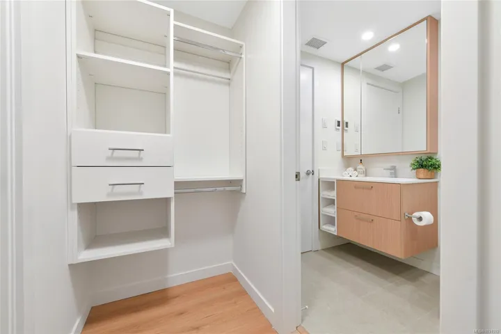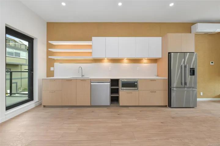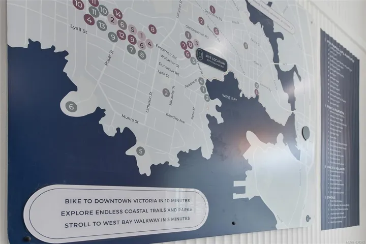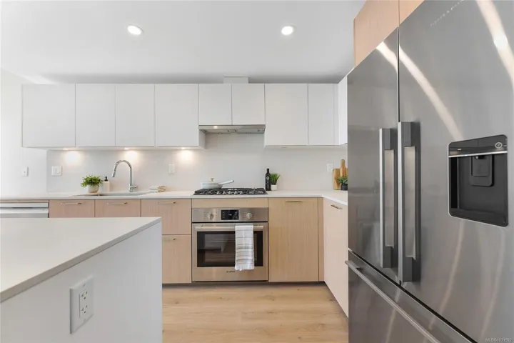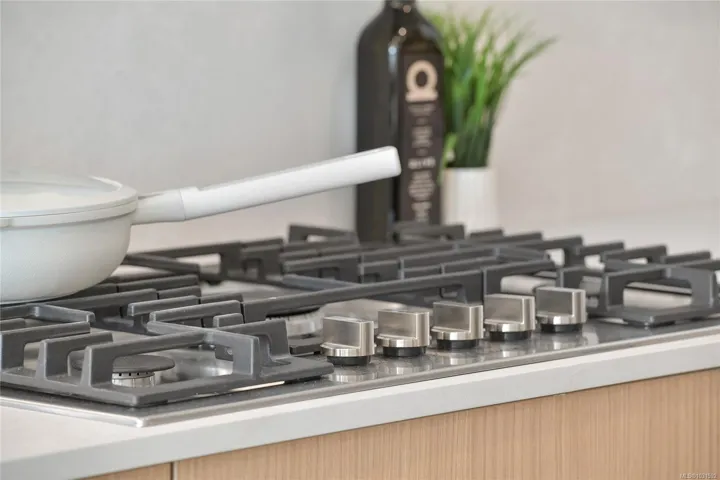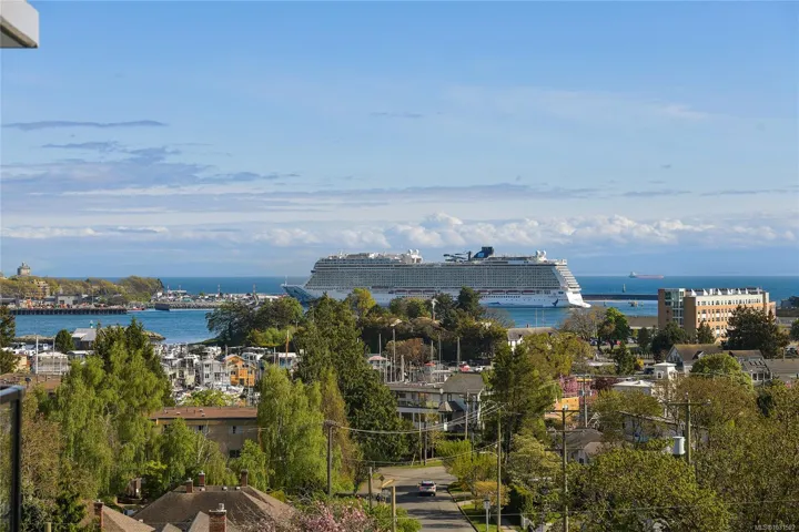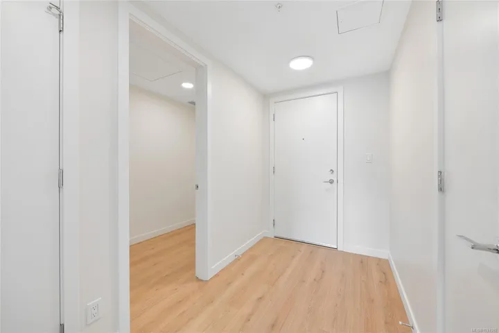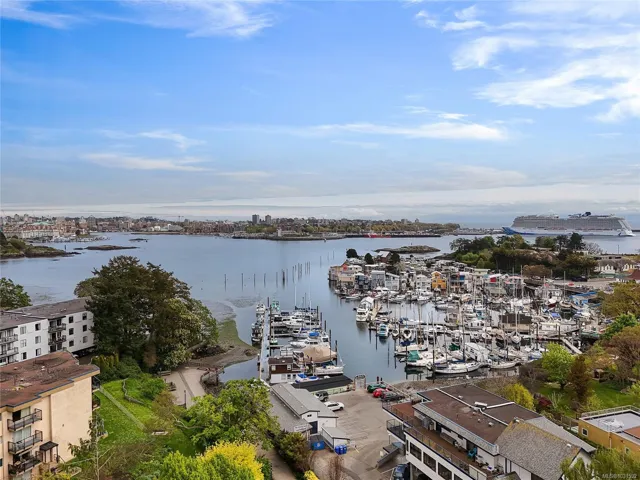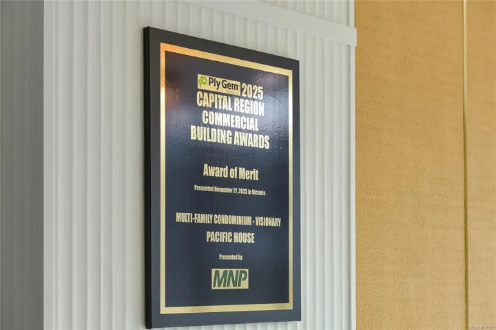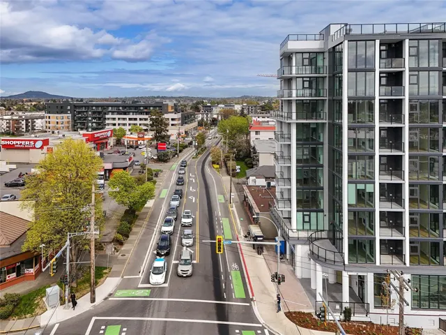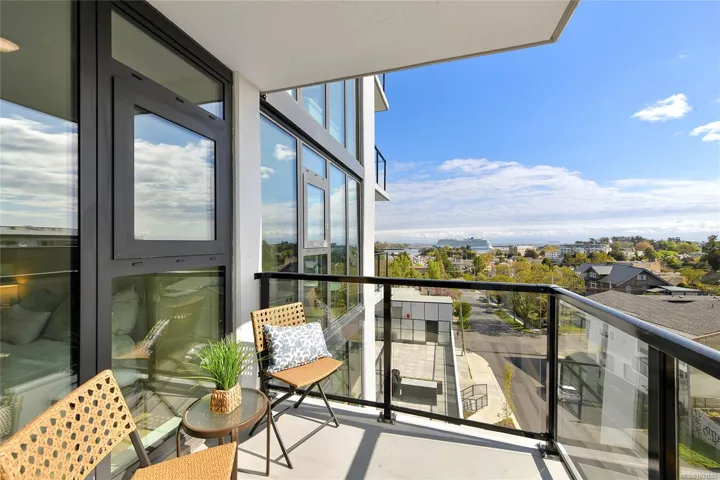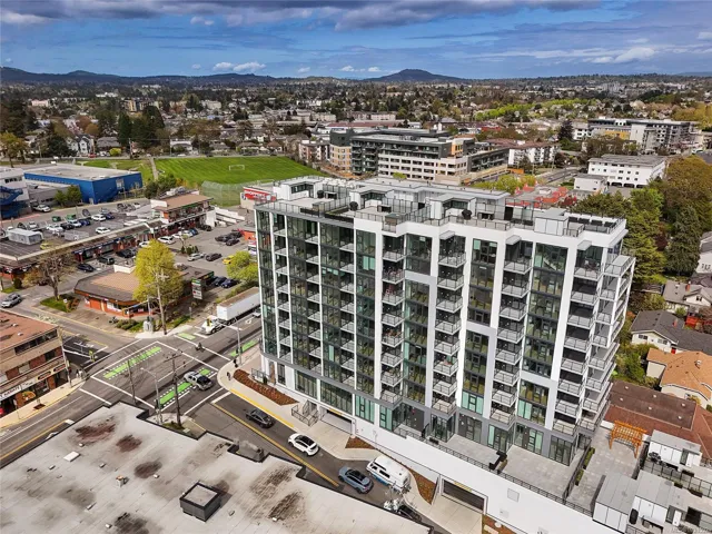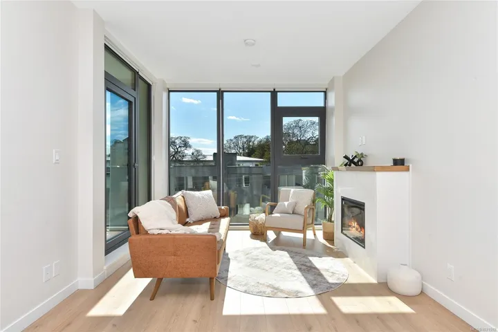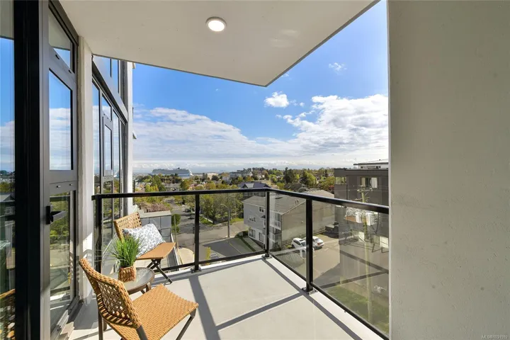 Welcome to Pacific House in the heart of Esquimalt. This brand new 2 bed,1 bath +den pet-friendly home offers bright,well-designed living w/ floor-to-ceiling windows & unobstructed SW ocean views. The open-concept layout creates seamless flow between the kitchen & living area, complete w/ an electric fireplace. The kitchen features Fisher Paykel & Bosch appliances, including a 5-burner gas cooktop, quartz countertops that wrap the backsplash,& ample counter space. Primary bed includes a walk-in closet.The bathroom features heated floors,a rain & handheld shower, & custom medicine cabinet. 2nd bedroom & versatile den offer flexibility for home office or extra storage. In-unit laundry & individually controlled heating & cooling add everyday comfort. Built w/ green standards, this home offers FOB access, secured underground parking, EV stations, storage locker, & rentable common space.Private balcony includes a gas hookup.Steps to Westbay & Songhees Walkway,mins to downtown Vic. Price+GST