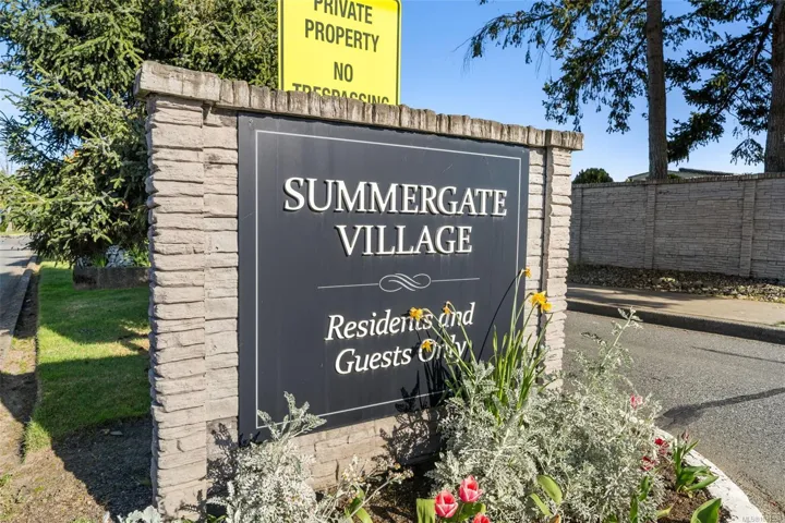 Welcome to Summergate Village, a highly sought after 55+ bare land strata community offering easy, low maintenance living. This well maintained two bedroom, two bathroom home sits on a desirable corner lot backing onto parkland and walking trails, offering added privacy and a peaceful natural outlook.