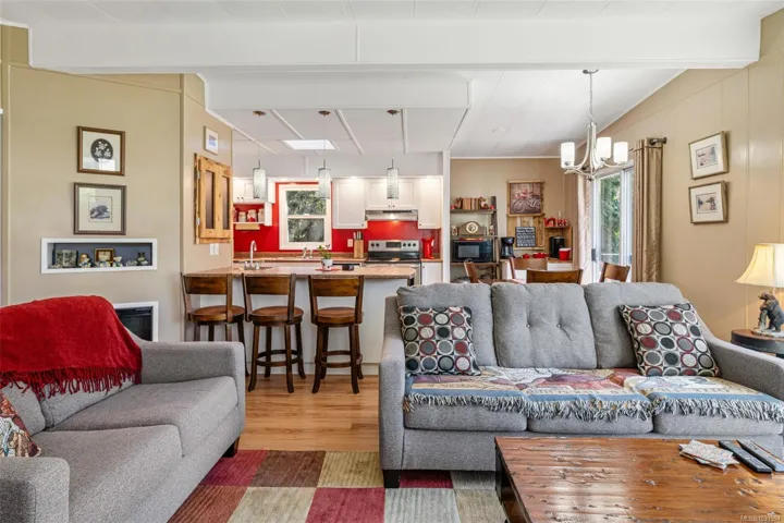 The bright, open concept layout features living and dining areas that flow seamlessly into the kitchen, creating a comfortable and functional space for everyday living. Sliding doors from the dining area open to a lovely sundeck, perfect for enjoying the afternoon sun, barbecues, or relaxing with a book. Additional updates include: new roof, new windows,and enjoy the confort and convenience of a heat pump!