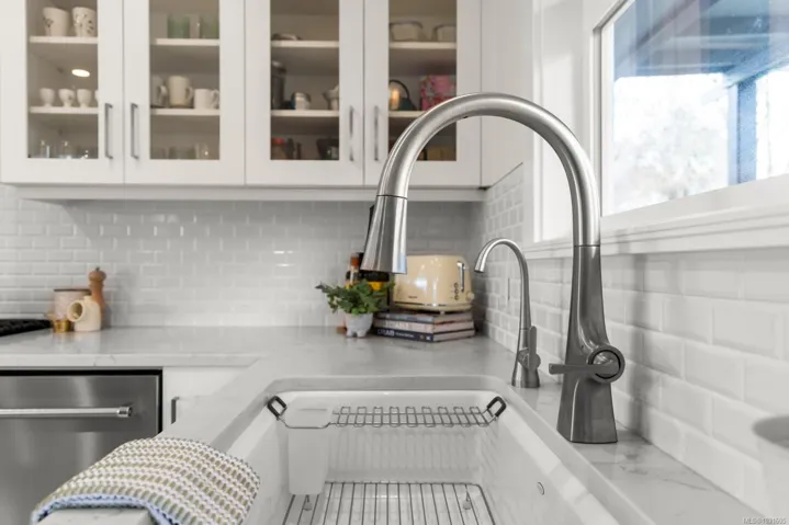 OPEN SAT 2:30-4pm Completely, gorgeously renovated from top to bottom, this 4-bedroom, 2-bath home was rebuilt with long-term living in mind, with quality materials and thoughtful craftsmanship. Walk into the beautiful living room with floor to ceiling windows, fireplace and open concept kitchen and dining room leading to the covered deck including gas heaters and bbq. On this floor is a large primary bedroom, second bedroom with french doors to deck and a sumptuous spa-like bathroom. Downstairs is a large recreation room, two bedrooms and another bathroom with walk-in shower, plus laundry. The fully fenced, west-facing yard is immaculate and leads out to a heated studio/office which has sliders for ample light, and is attached to the garage. Everything has been updated in this home from plumbing, wiring, electrical, HVAC, perimeter drains, new flooring, wiring and custom closets. Outside, the home features new stucco, paint, chimney, doors, & larger windows for more natural light.