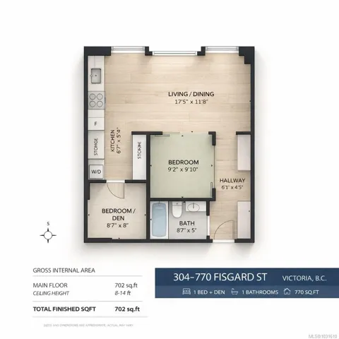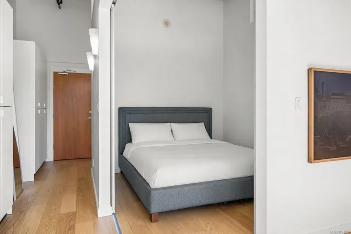 **OPEN HOUSE, Saturday, April 18th 11am-1pm** Prime downtown location in the iconic Hudson. This 1 bed + den home offers over 700 sq ft of airy, contemporary living, highlighted by 14 ft exposed concrete ceilings and oversized south facing heritage windows that flood the space with natural light.