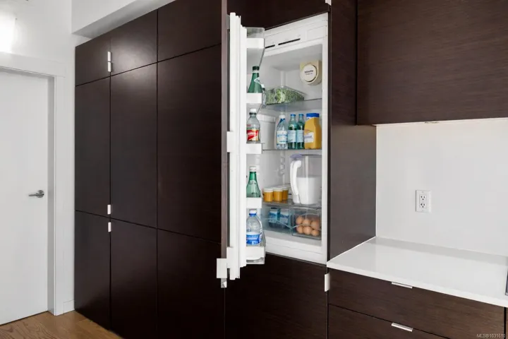 The sleek kitchen features dark oak cabinetry and integrated Miele appliances, while recent upgrades include beautiful engineered hardwood flooring and a brand new heat pump furnace for efficient year round comfort. Thoughtful built ins and a spacious pantry provide excellent storage throughout.