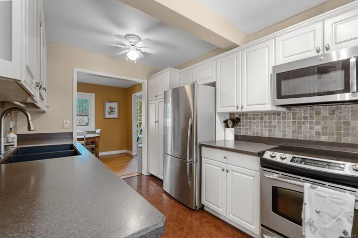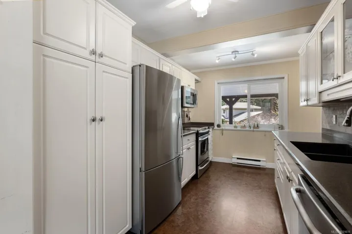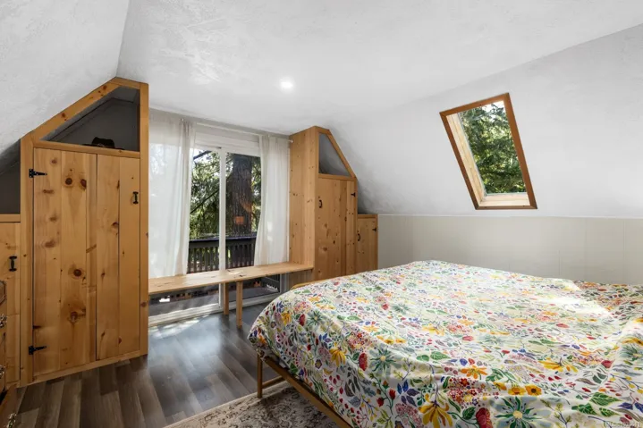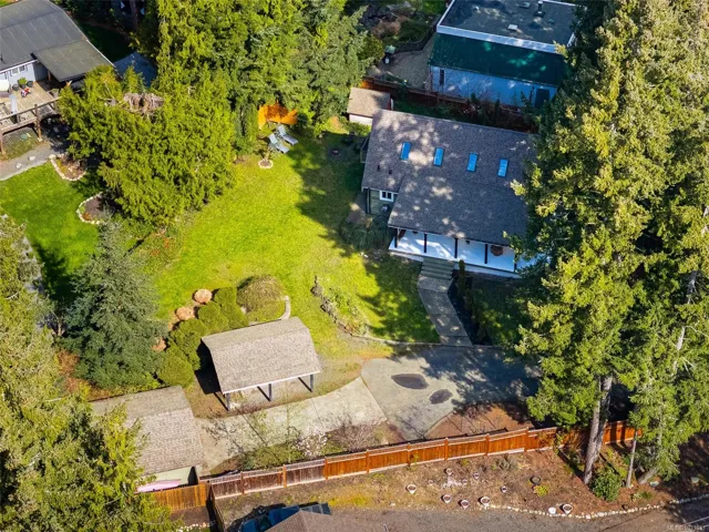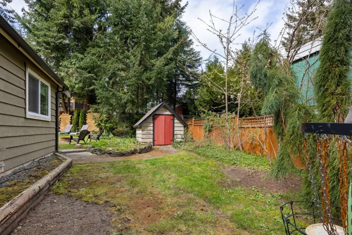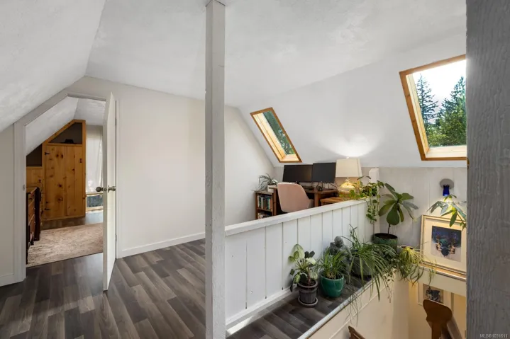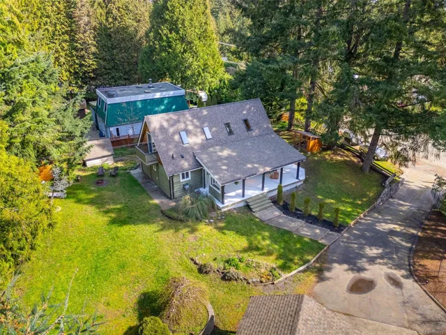 Outstanding opportunity! Nestled on a quiet, secluded cul-de-sac, this tranquil home welcomes you with a charming covered porch. The main level features a functional galley kitchen with adjoining dining area, and a spacious living room warmed by a natural gas fireplace. A versatile main-floor room offers flexibility as a bedroom, den, or home office. A custom Euro-style staircase leads upstairs to the primary suite, guest bedroom, and a cozy office nook. Updated windows (2018) enhance comfort and efficiency. The expansive yard provides ample parking, a large garage with excellent storage, and a separate covered area ideal for boat storage. Conveniently located near parks and scenic forest trails, this property offers both privacy and outdoor lifestyle appeal.