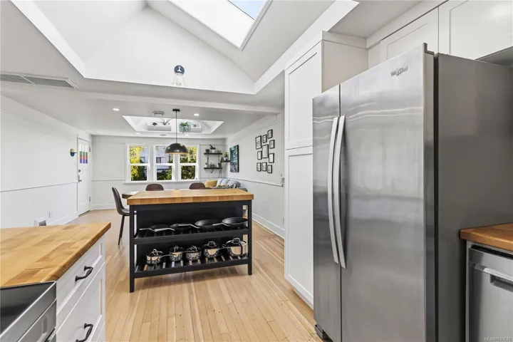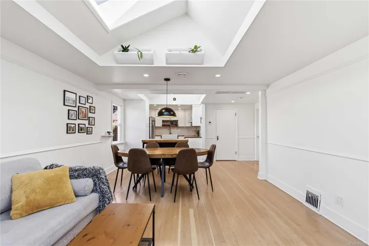 Ideally located just steps to the Inner Harbour, Dallas Road Waterfront, Beacon Hill Park, Fisherman’s Wharf, and the everyday conveniences of James Bay Square Shopping Centre, this beautifully updated 3-bedroom plus studio, 2-bathroom character home offers the ultimate walkable lifestyle. Designed to feel like a detached home-only connected by a small rear awning—it blends timeless charm with modern upgrades, including original solid hardwood floors, coved ceilings, skylights, a new ducted heat pump, upgraded insulation, updated kitchen with new cabinetry and pantry, renovated bathrooms, refreshed lower level with new flooring and finished laundry, hot water on demand, new appliances, and 200-amp service. The self-contained studio (currently vacant) offers excellent flexibility for a mortgage helper, guest space, or home office, while the sunny south-facing yard and fresh exterior paint complete this exceptional offering. Location, lifestyle, and opportunity all in one.